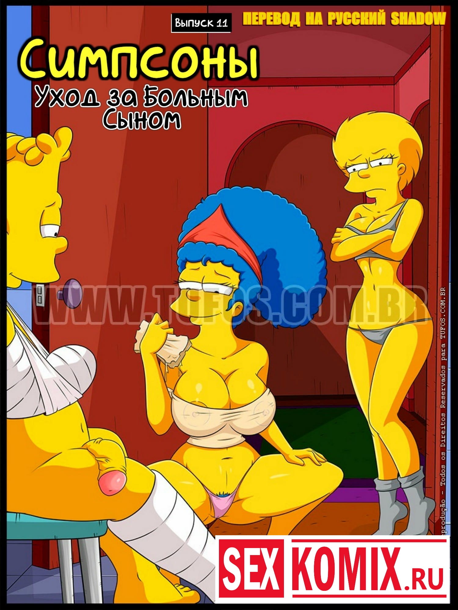 Порно комикс Симпсоны. Часть 11. Уход за больным сыном. Барт катался на скейтборде и на большой скорости упал. Он сломал руку и сильно повредил ногу, после нескольких дней в больнице парень вернулся домой и наконец то мог спокойно подрочить в одиночестве. Но не мог этого сделать, Мардж проходила мимо его комнаты и увидела как ему тяжело. Женщина решила помочь своему сыну получить удовольствие. Она сделала Барту минет, а потом села на его член своей сочной киской.