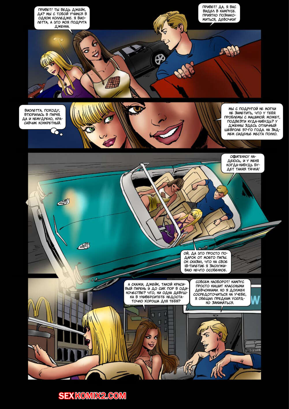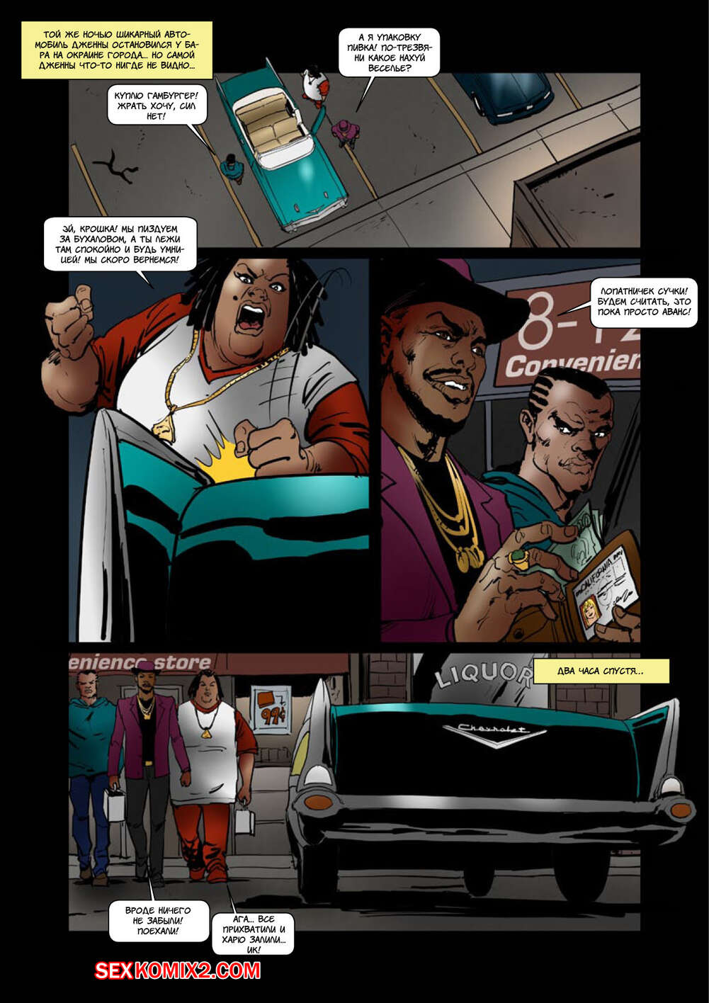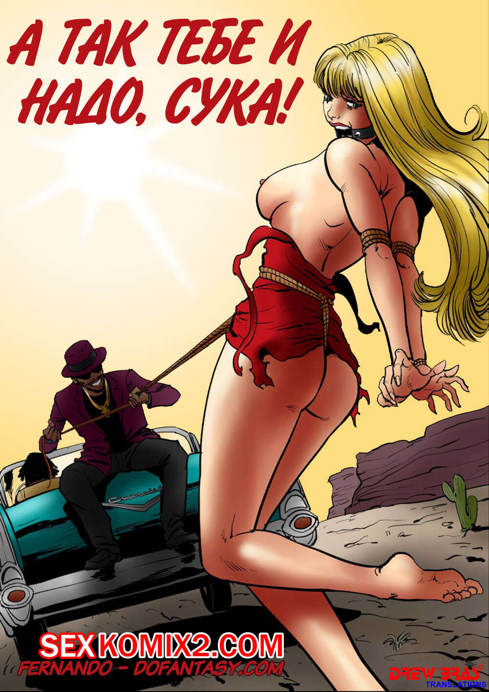Порно комикс А так тебе и надо сука Черные парни подцепили в клубе сисястую блондинку и схватили ее. Они увезли ее за город, где решили с ней как следует повеселиться. Они раздели ее и дали ей отсосать свои большие хуи, после чего ее выебали.