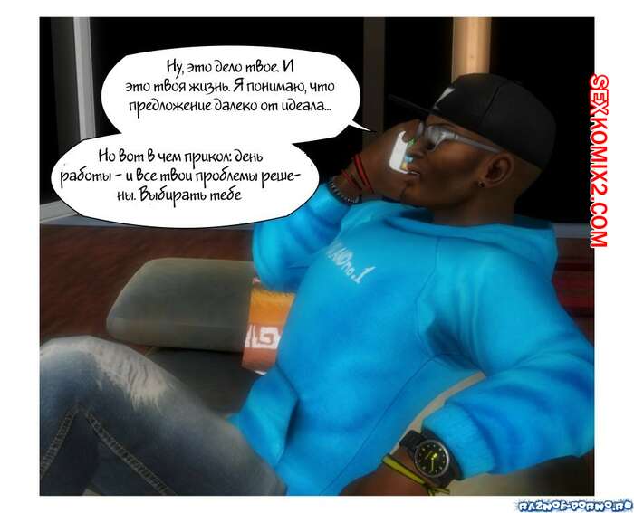 Порно комикс Модель для взрослых Горячая сисястая блондинка устроилась на работу моделью. Ее фотографировали, после чего красотку попросили раздеться. К ней присоединился черный парень, который стал ее соблазнять своим большим хуем.