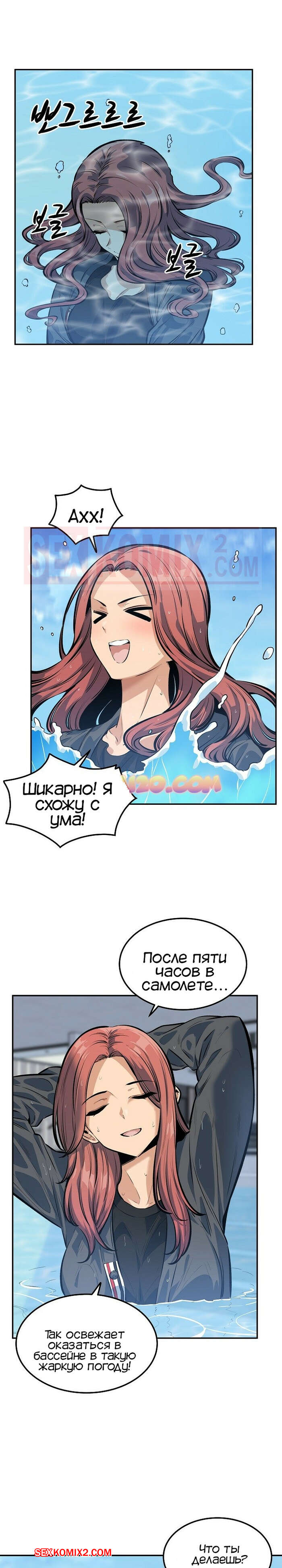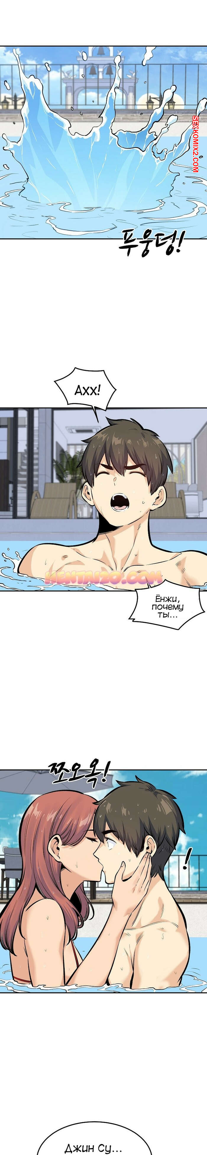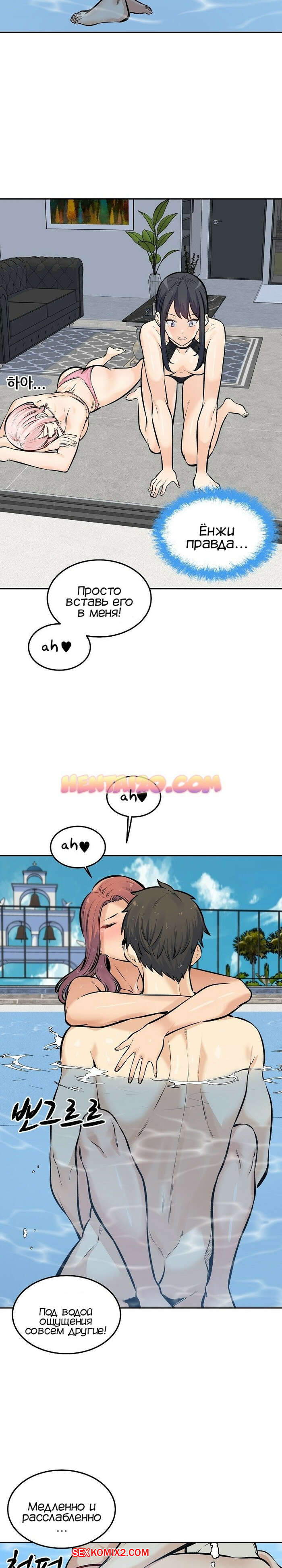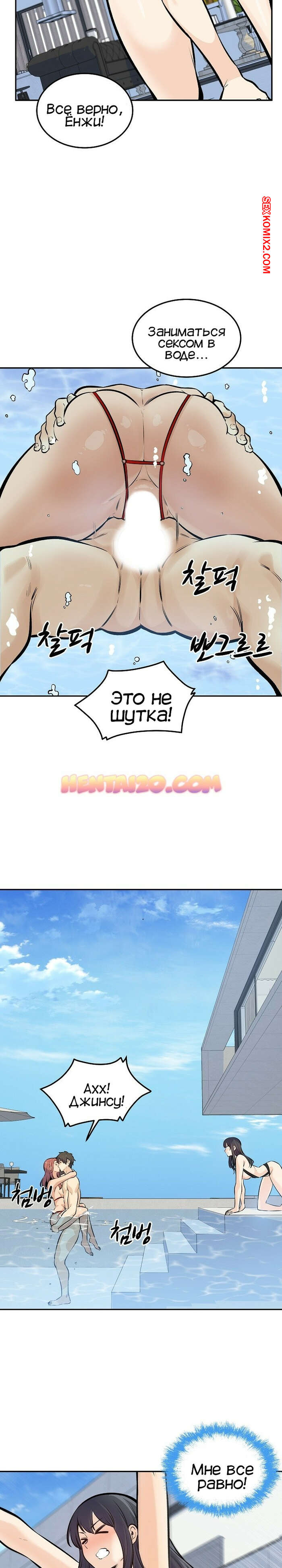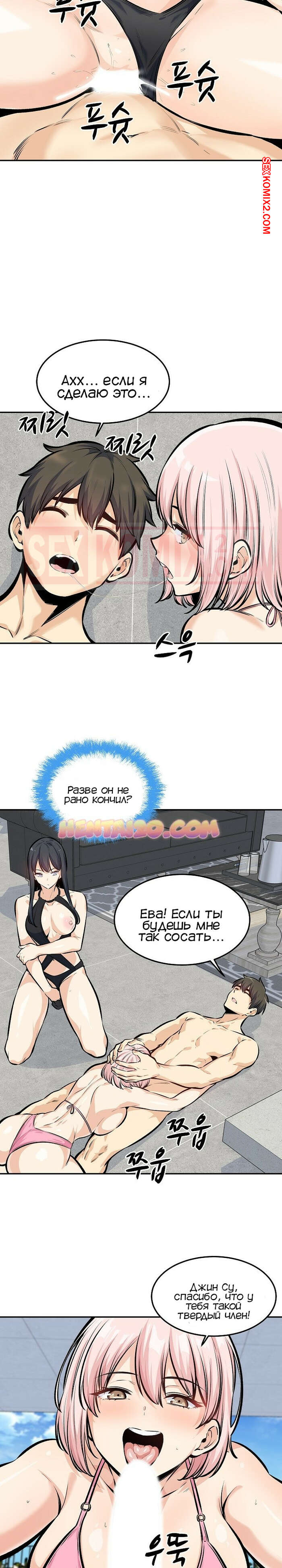 Порно комикс Извини, это моя комната. Часть 118. Excuse me This is my Room Джин Су приехал со своими девушками на курорт и красотки сразу решили повеселиться с парнем. Они отсосали его большой хуй и дали ему себя выебать, после чего одна из красоток решила с ним поебаться в бассейне.
