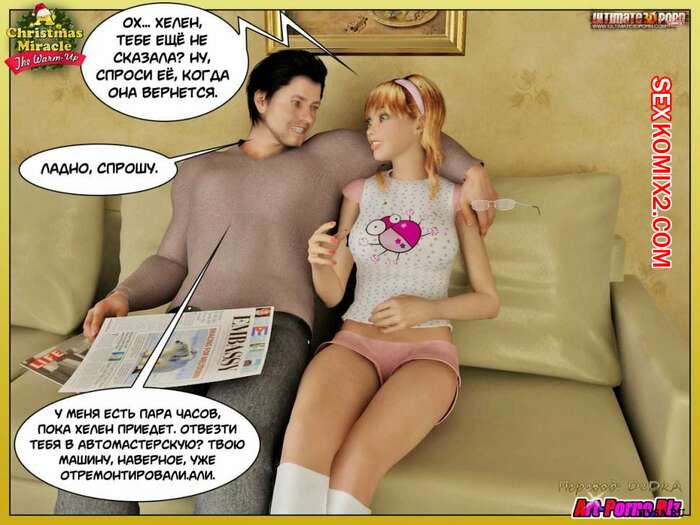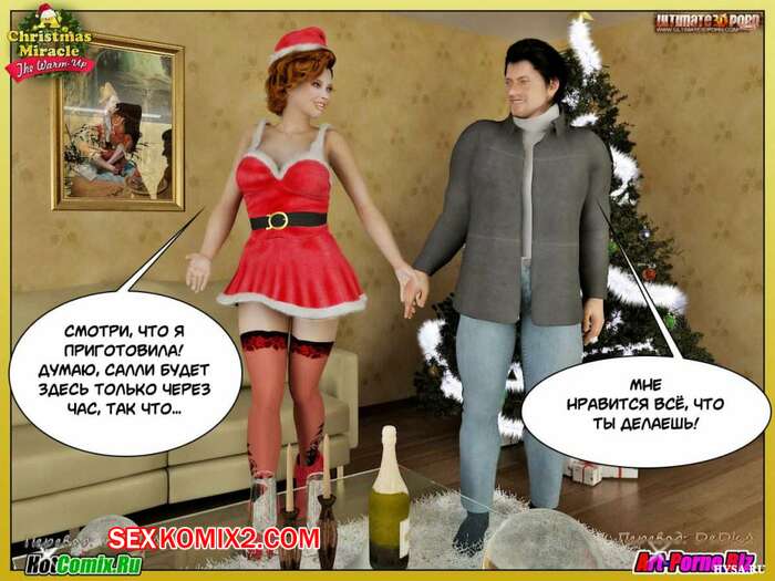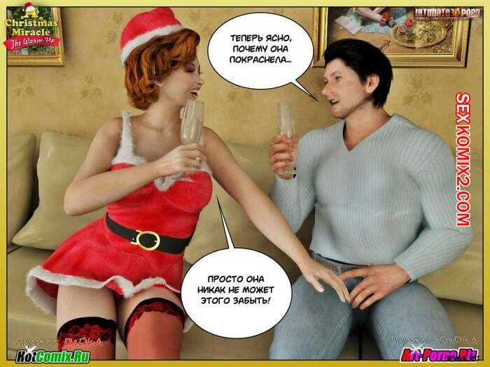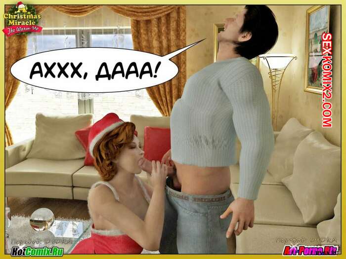 Порно комикс Рождественское чудо Сисястая милфа брюнетка решила сделать сюрприз своему мужу перед рождеством. Она надела сексуальный наряд и стала сосать его большой хуй, после чего к ним приоединалсь их дочка и они занялись групповой еблей.