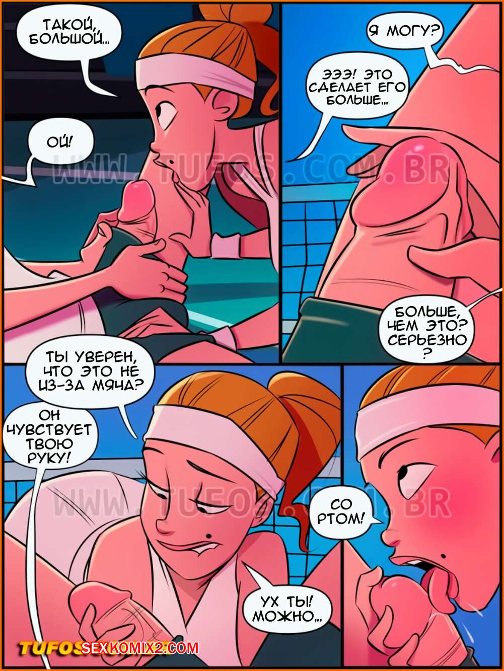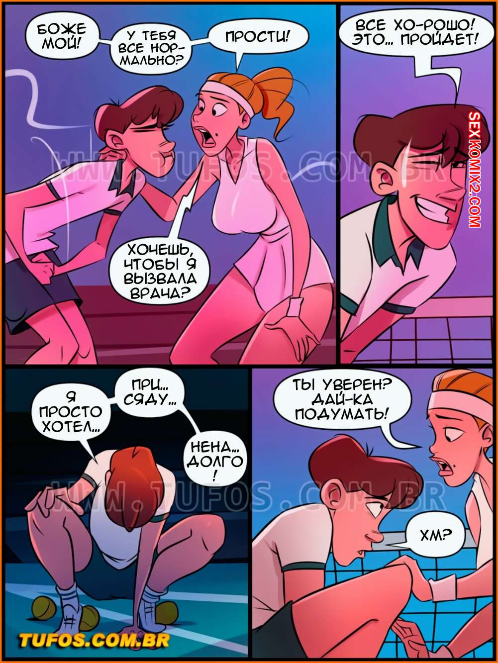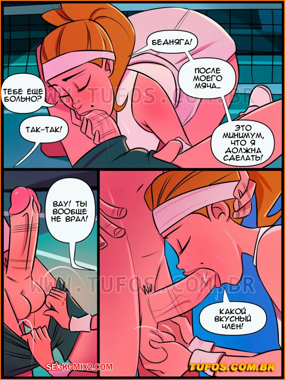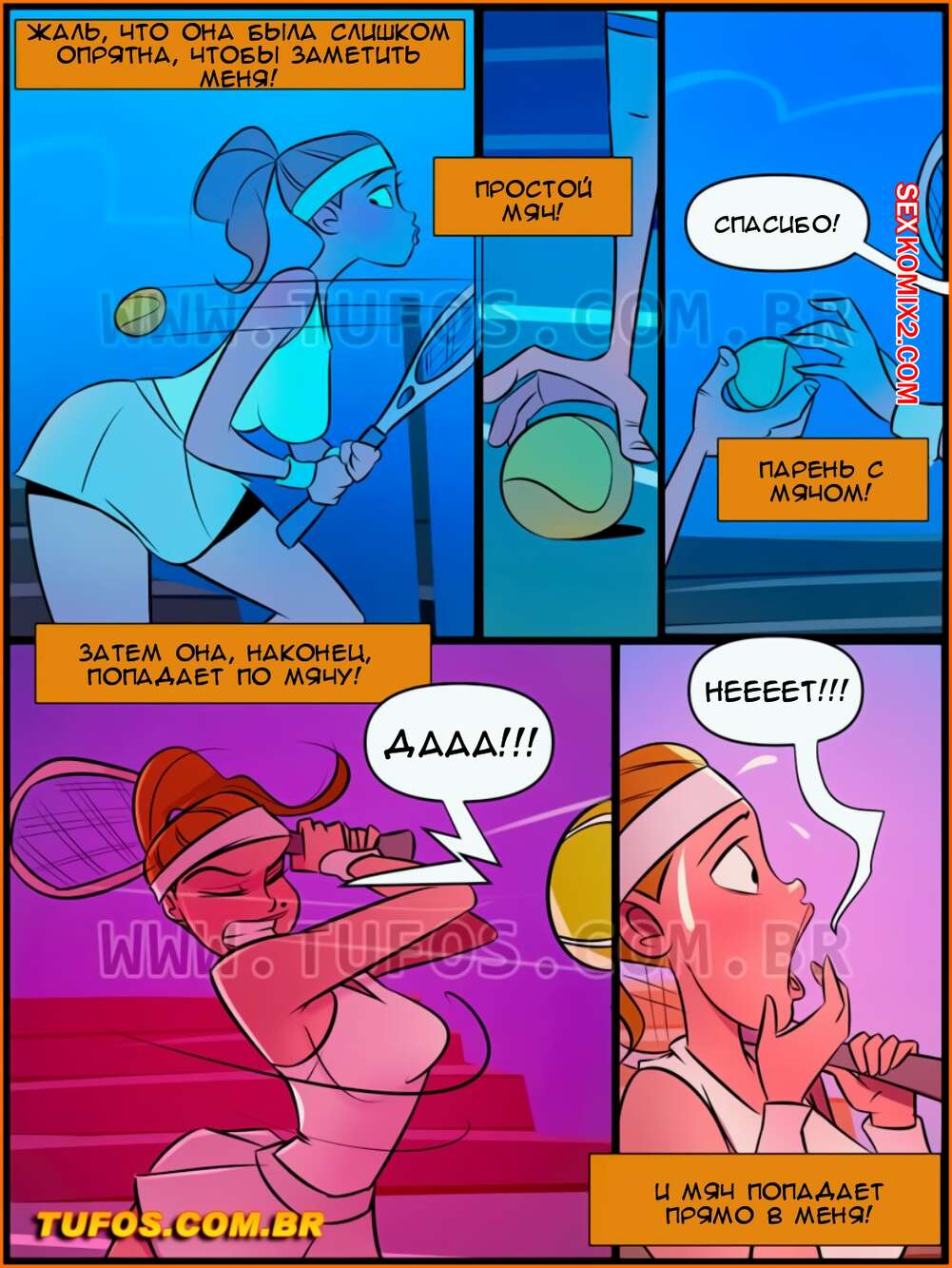 Порно комикс Дом мамы Джоаны. Часть 18. Месть парня, подающего мячи. Tufos. Парень подает мечи на поле для тенниса, одна богатенькая девушка плохо к нему отнеслась, поэтому он решил проучить ее и наказать плохую девчонку.