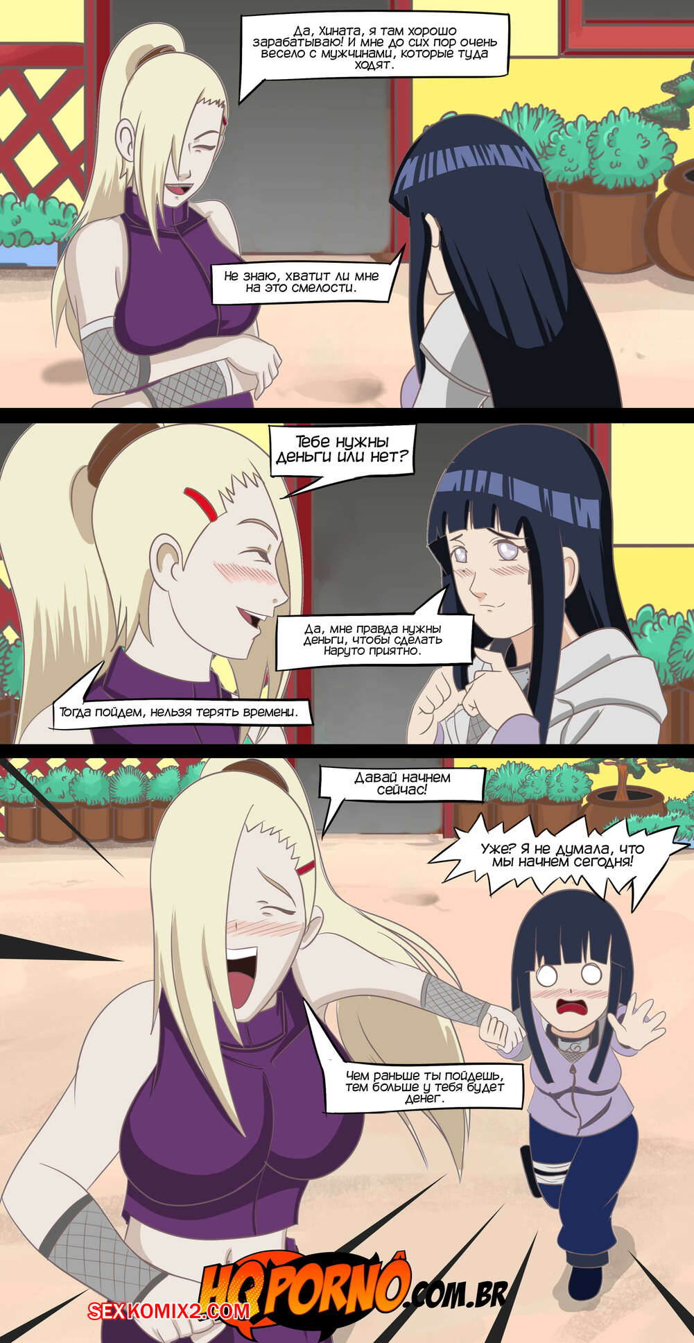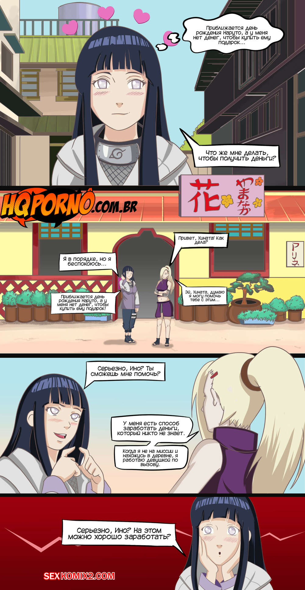 Порно комикс Наруто. Часть 4. Секрет Хинаты и Ино. Narutu. HQPorno. TZComiX У Наруто скоро день рождения, а у Хинаты нет денег, чтобы сделать ему подарок. Ино собирается помочь подруге и предлагает ей трахаться с парнями за деньги. У Хинаты нет выбора и она соглашается.