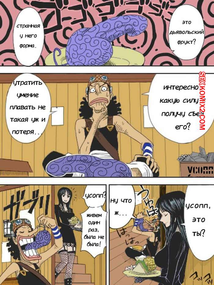 Порно комикс One Piece. Бог Усопп. god Usopp Горячая сисястая красотка брюнетка решила повеселиться со своим дружком. Она разделась перед ним, возбудив парня, после чего стала сосать его большой хуй и дала ему себя хорошенько выебать.