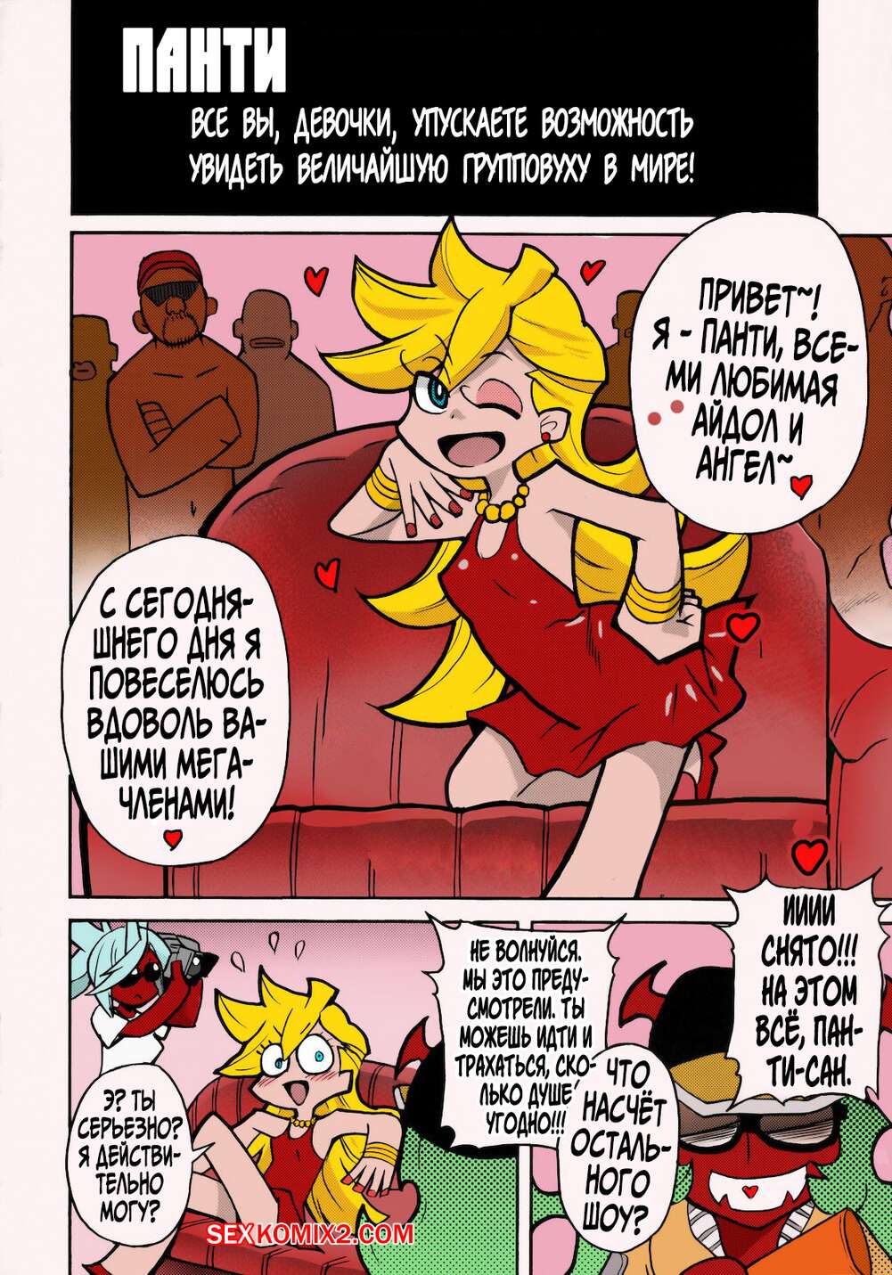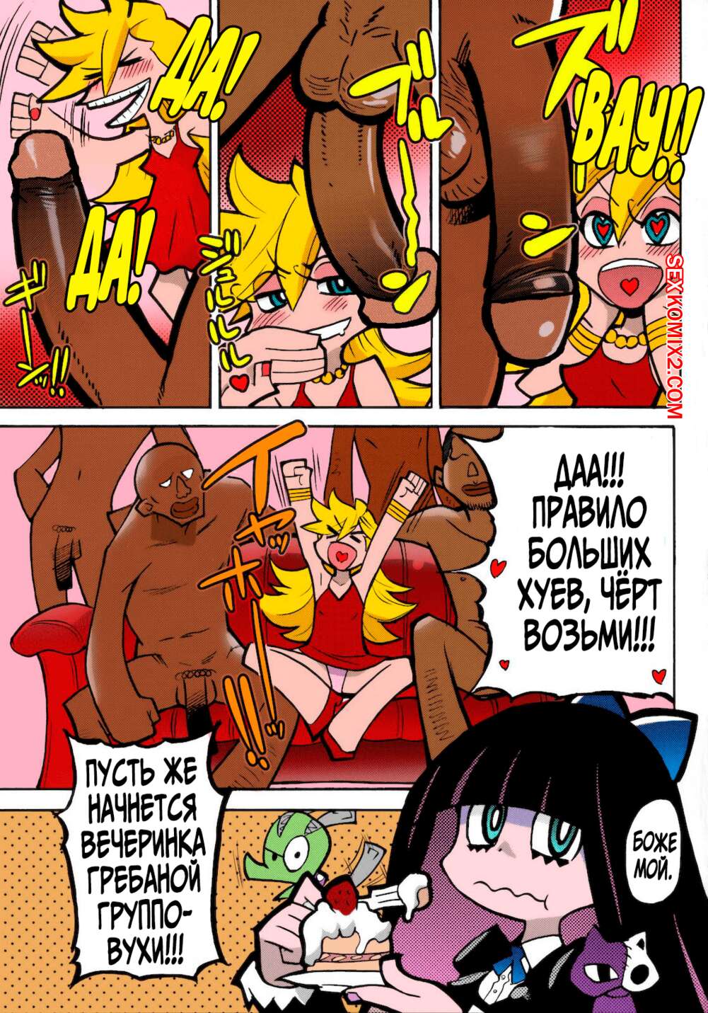 Порно комикс Панти. PANTY. Okina Keikaku Горячие сисястые красотки были очень возбуждены и решили повеселиться со своими черными дружками. Они разделись перед ними и стали сосать их большие хуи, после чего дали им себя выебать во все дырочки.