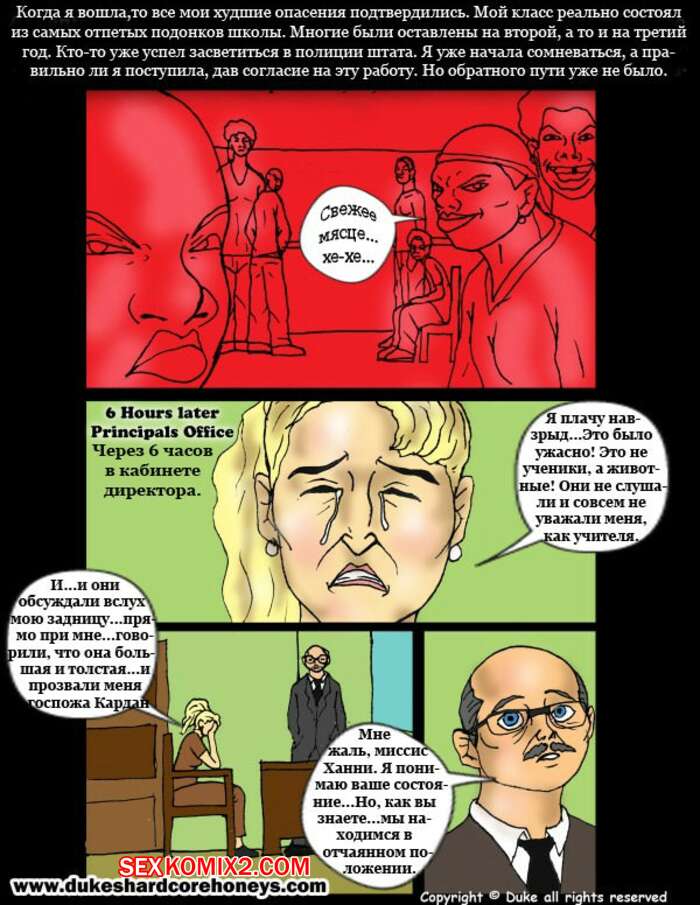 Порно комикс Большезадая миссис Хани. Mrs Hani Сисястая милфа блондинка с большой задницей работает учителем и преподает черным парням. Они решили с ней повеселиться и стали ее раздевать, чтобы хорошенько ее выебать.