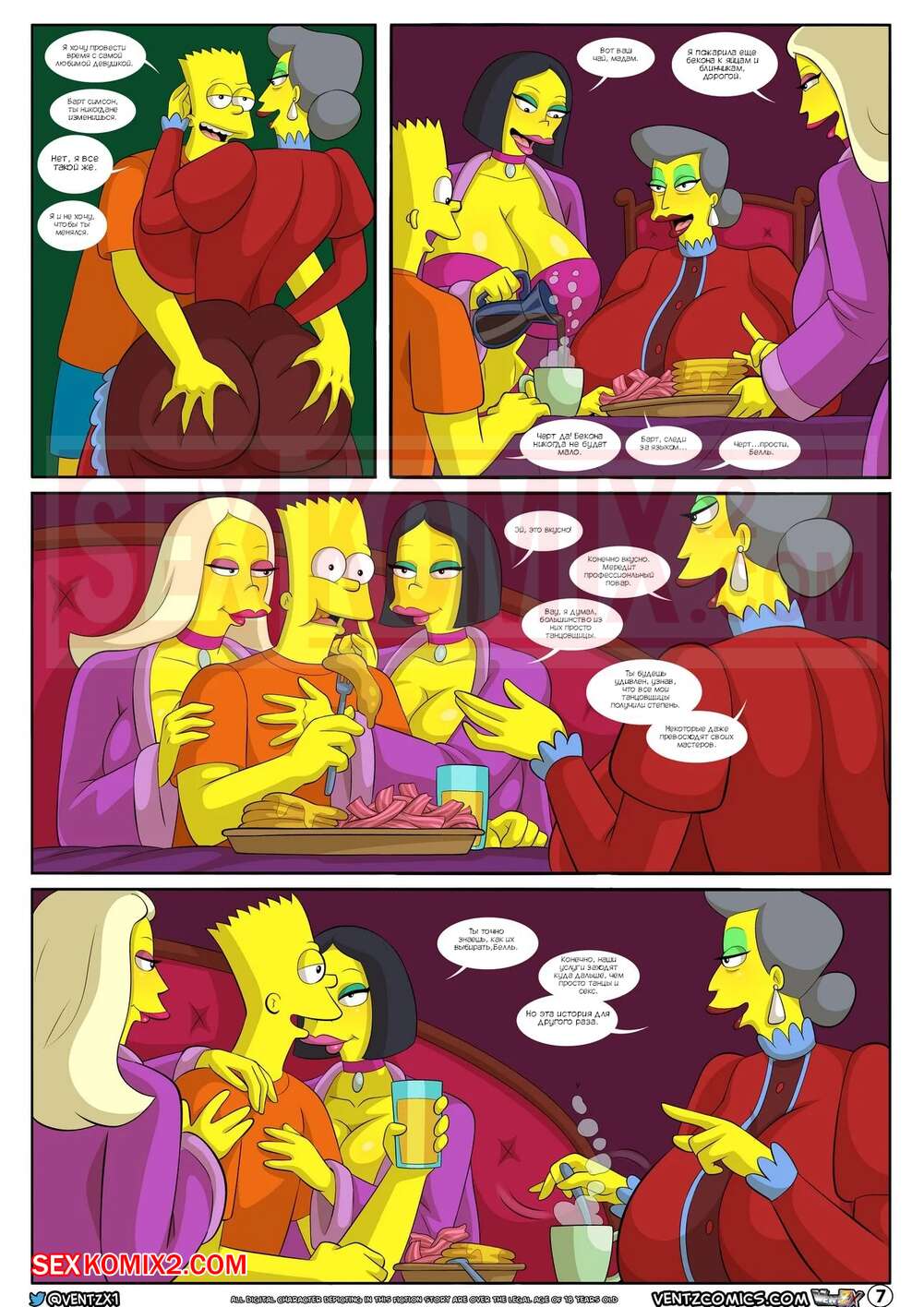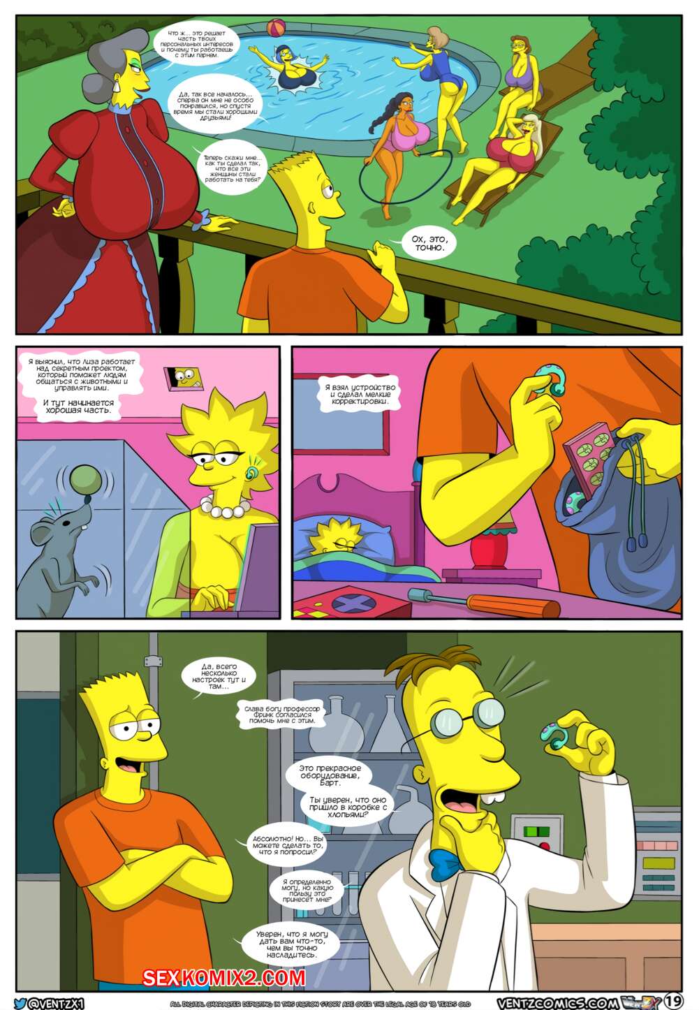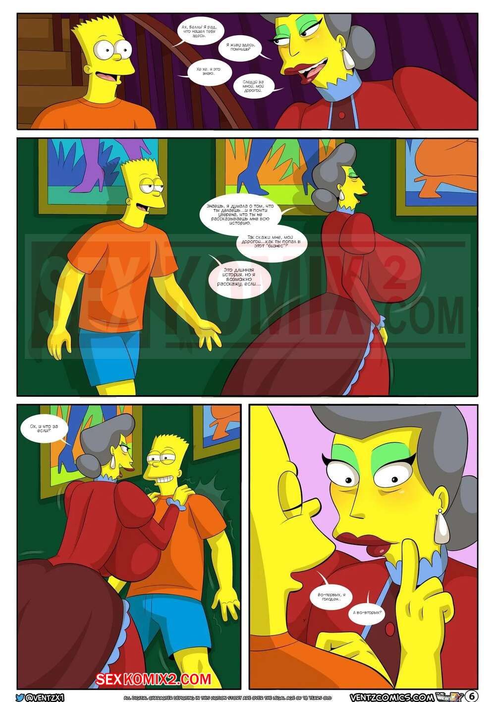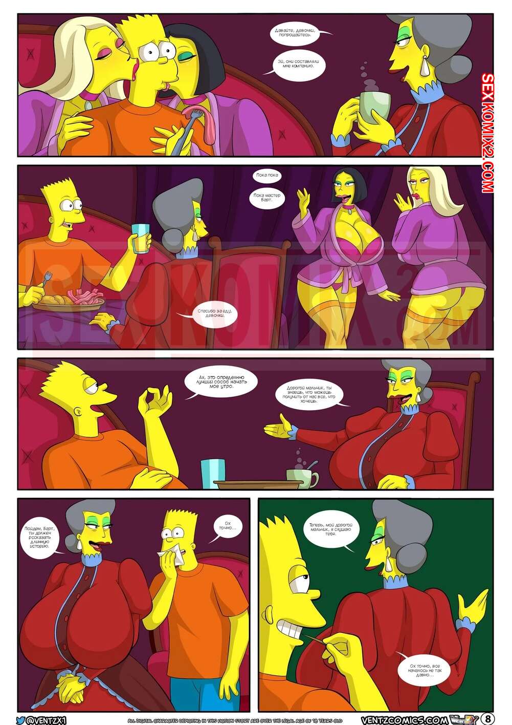 Порно комикс Приключения Даррена. Часть 13. Симпсоны. Darrens Adventure. The Simpsons. Arabatos После ебли с сисястой милфой Барт посетил душ и решил отправиться домой, но его остановила хозяйка мотеля, которая хотела узнать историю бизнеса, который сейчас ведет молодой парень.