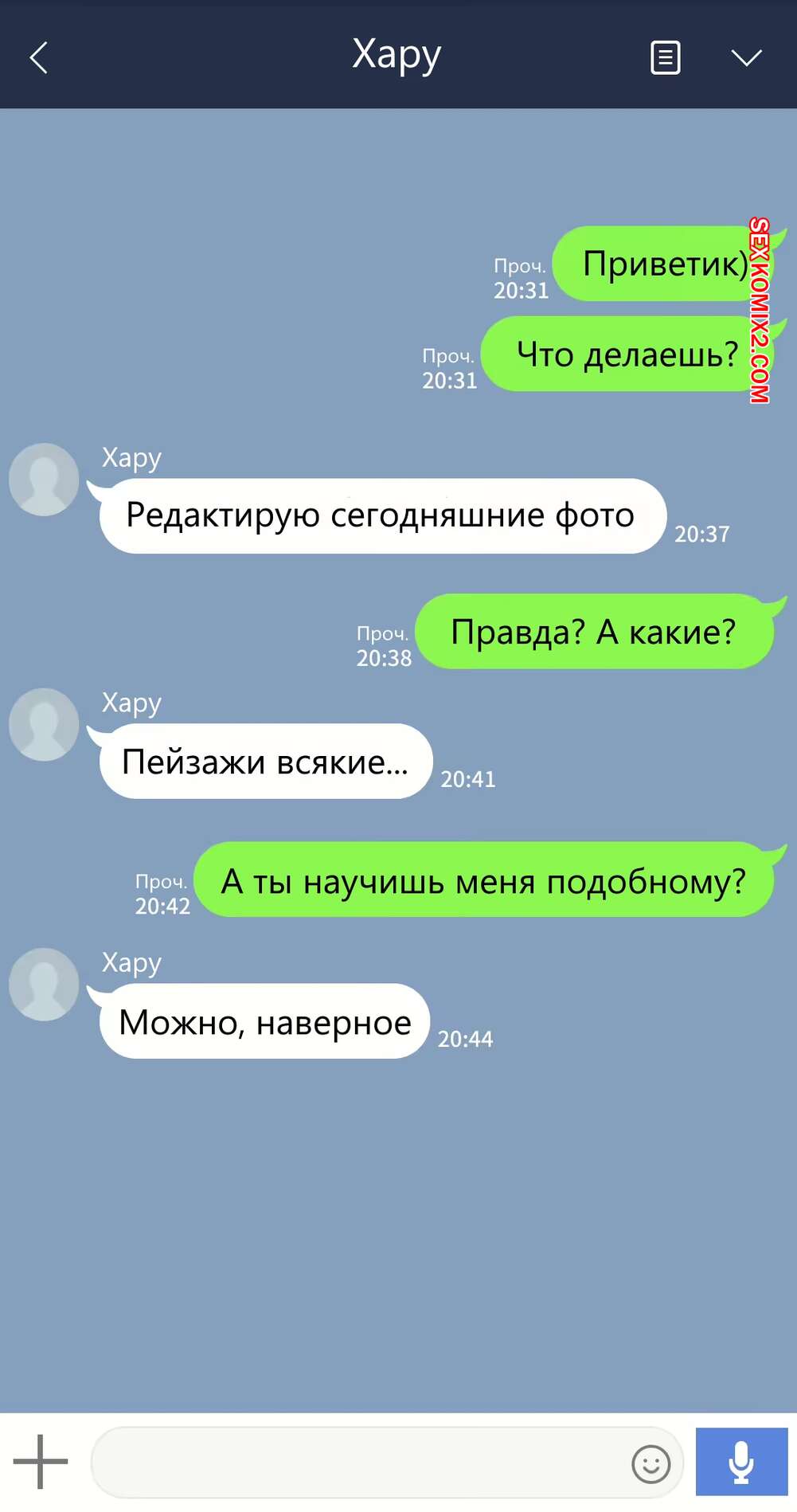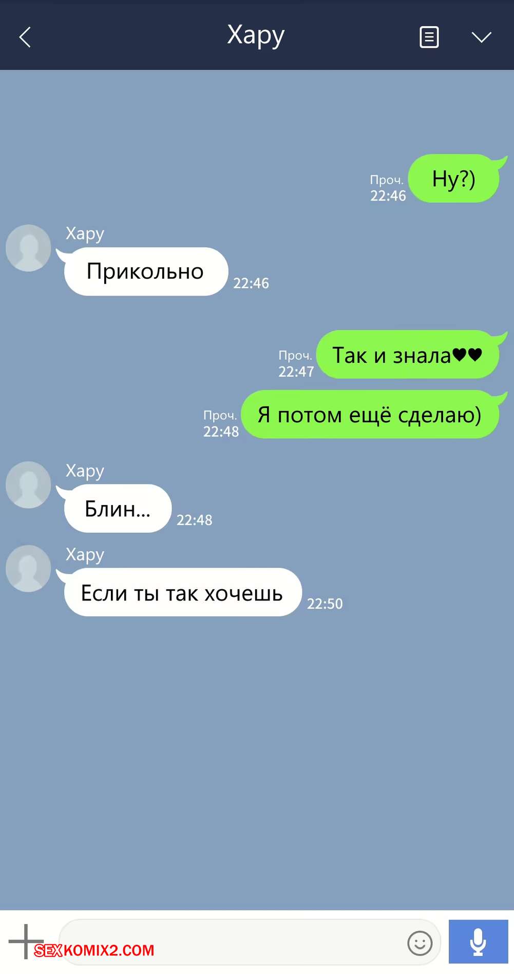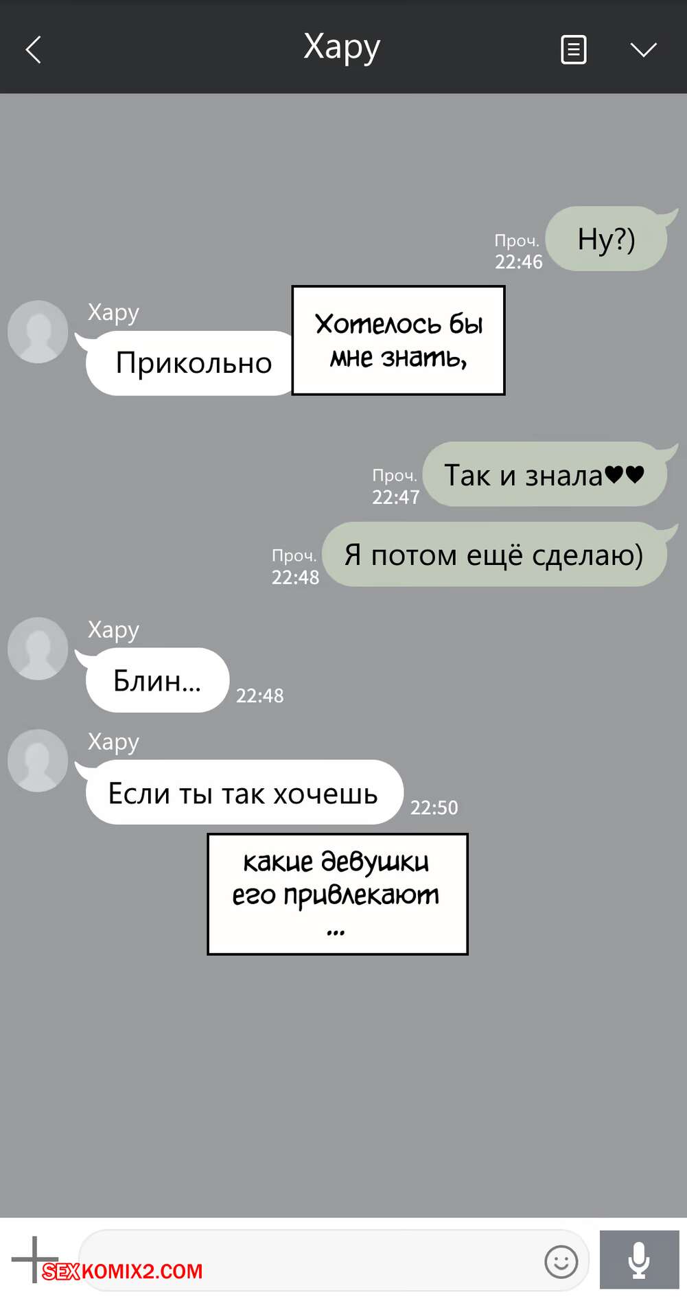 Марио2022-09-19Хару ты долбоёб пошли её нахуй не надо становиться куколдом, автор нарисуй остальные части нормальными чтоб Хару себе нашел норм девчонку а эта вместе со своим семпаем сдохли от СПИДа