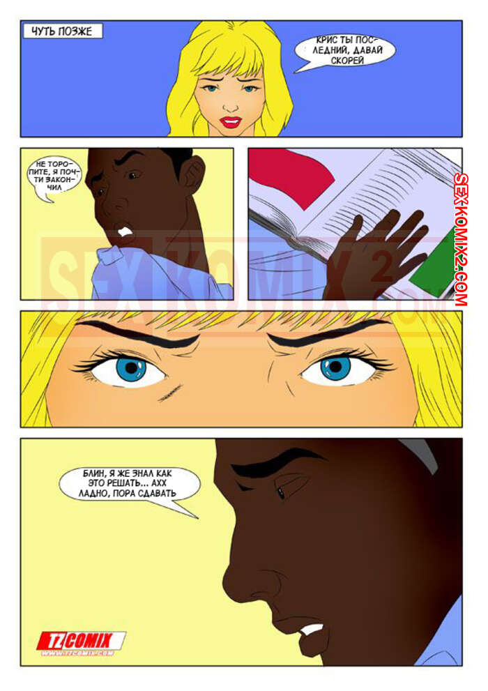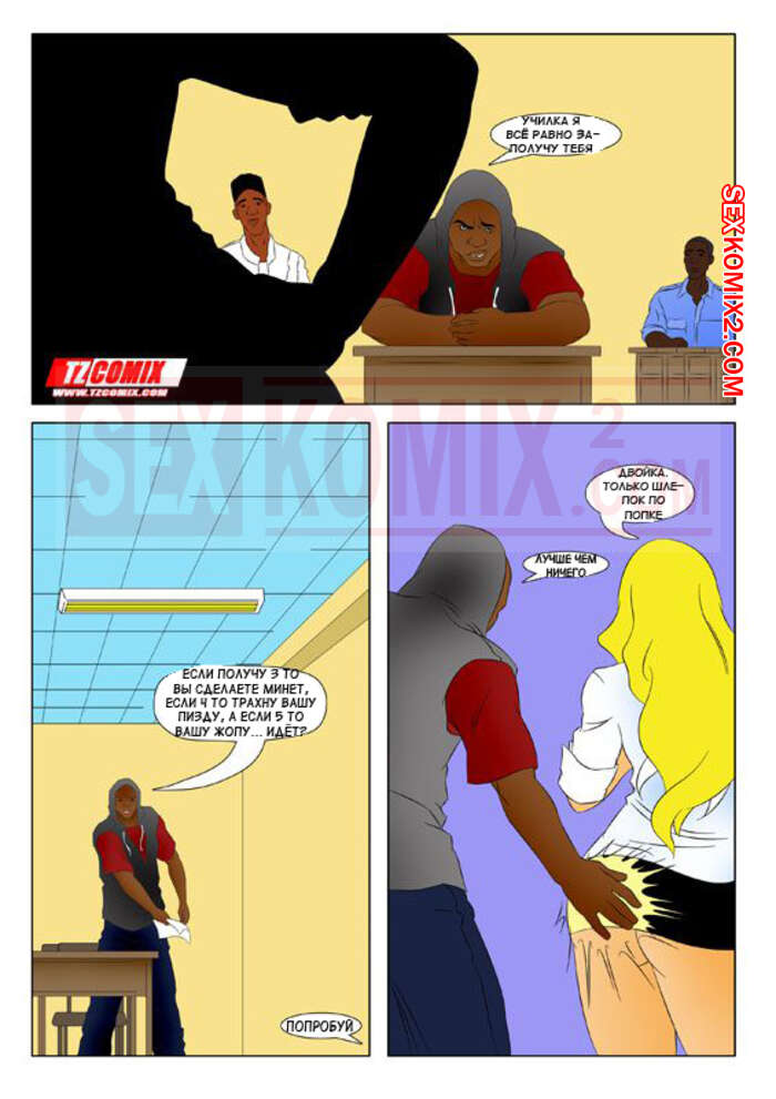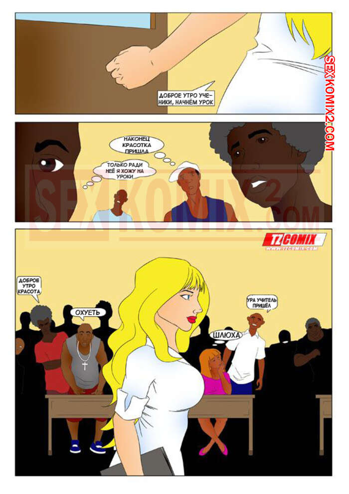 Порно комикс Развратная училка. Professora Safada. HQPorno. TZComiX Горячая сисястая блондинка привлекла внимание своего темнокожего ученика и они решили повеселиться вдвоем. Сучка разделась и стала сосать большой хуй парня, после чего дала ему себя выебать.