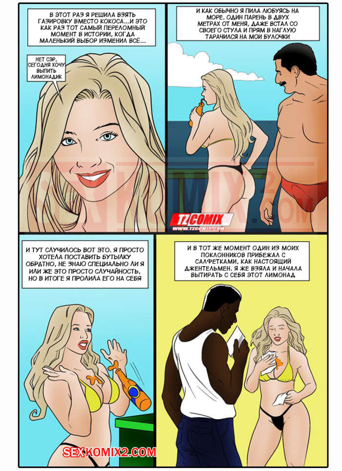 Порно комикс А можно мне водичку и член в попку. Uma Agua e um Pau no Cu. HQPorno. TZComiX Темнокожий парень подцепил на пляже горячую сисястую блондинку и предложил ей уединиться. Она разделась перед ним и стала сосать большой хуй парня, после чего дала ему себя выебать в пизду и задницу.