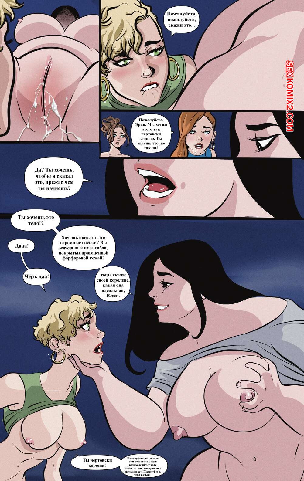 Порно комикс Путь к ужасу. Часть 3. The Wayfare Horror. Вторая ночь. Госпожа Невинная и Блудница Горячие сисястые красотки продолжают чувствовать сильное возбуждение. Они раздеваются и ласкают друг дружку, после чего занимаются страстной лесбийской еблей, получая огромное удовольствие.