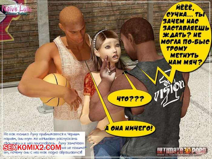 Порно комикс Наивная Лулу Молодая горячая брюнетка нарвалась на двух черных парней, играющих в баскетбол. Они разделись сучку и дали ей отсосать свои большие хуи, после чего хорошенько выебали ее во все дырочки.