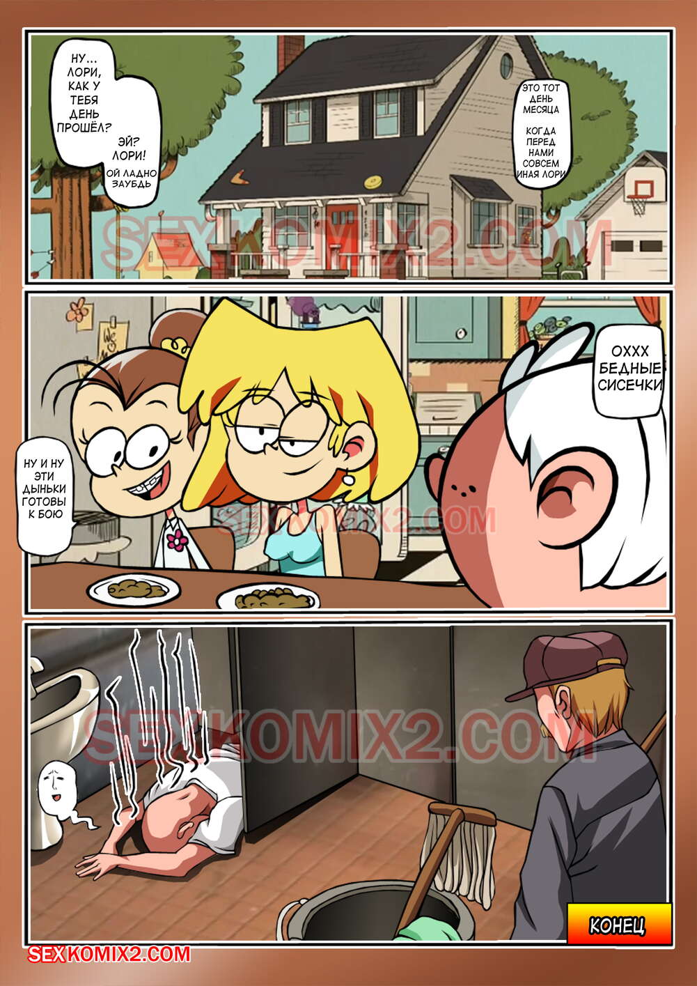 Порно комикс Мой развратный дом. Совсем другая Лори. В цвете. The Lewd House. Lori Loud. Озабоченная блондинка следила за парнем до самого дома, когда он подошёл к своей квартире, она набросилась на него и начала сосать его член.