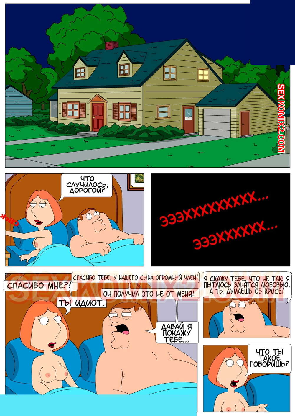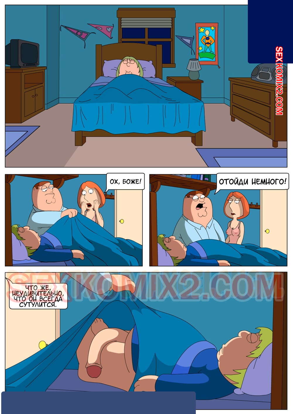 Порно комикс Гриффины. Мать трахнула спящего. The Third Leg. Ночь в доме Гриффинов. Лоис решила поцеловать Криса на ночь, но после того, что она увидела, она не смогла остановится.