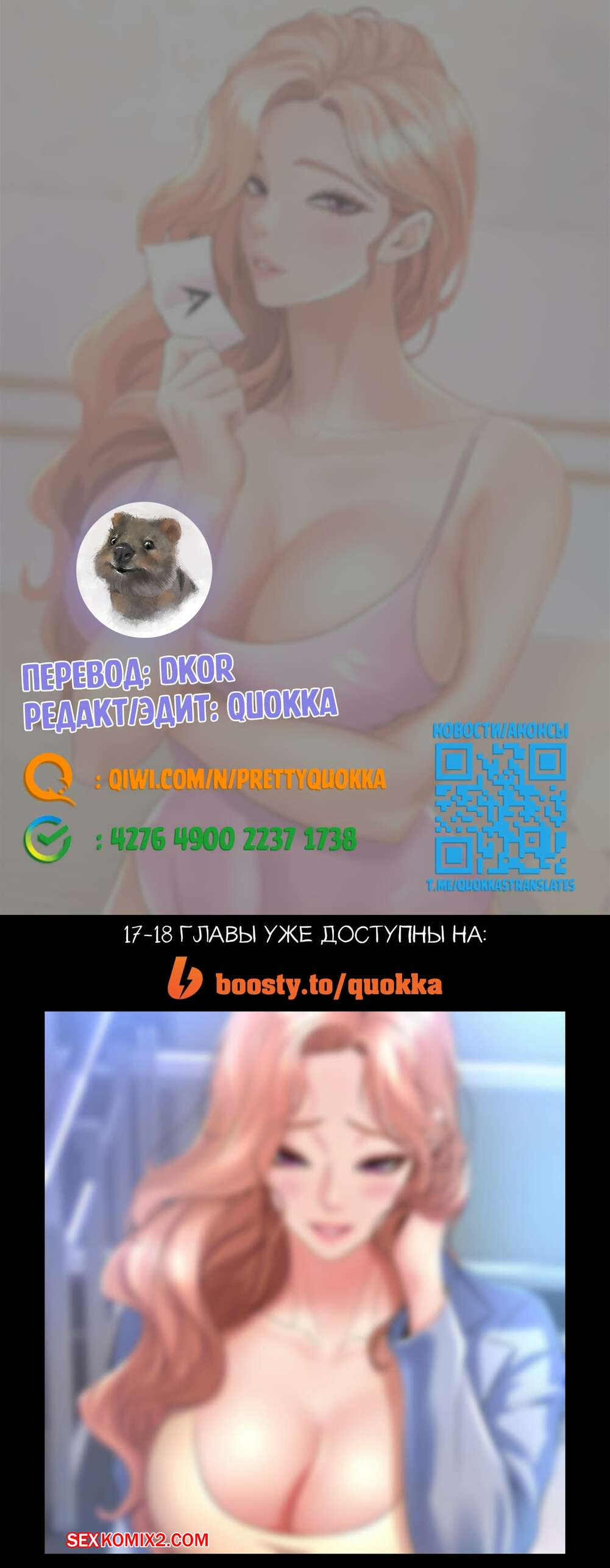 Порно комикс Старшекурсницы с факультета хореографии. Части 16 и 17 и 18 Горячая сисястая блондинка очень возбуждена и хочет трахаться. Она разделась перед парнем и стала сосать его большой хуй, после чего дала ему себя хорошенько выебать.