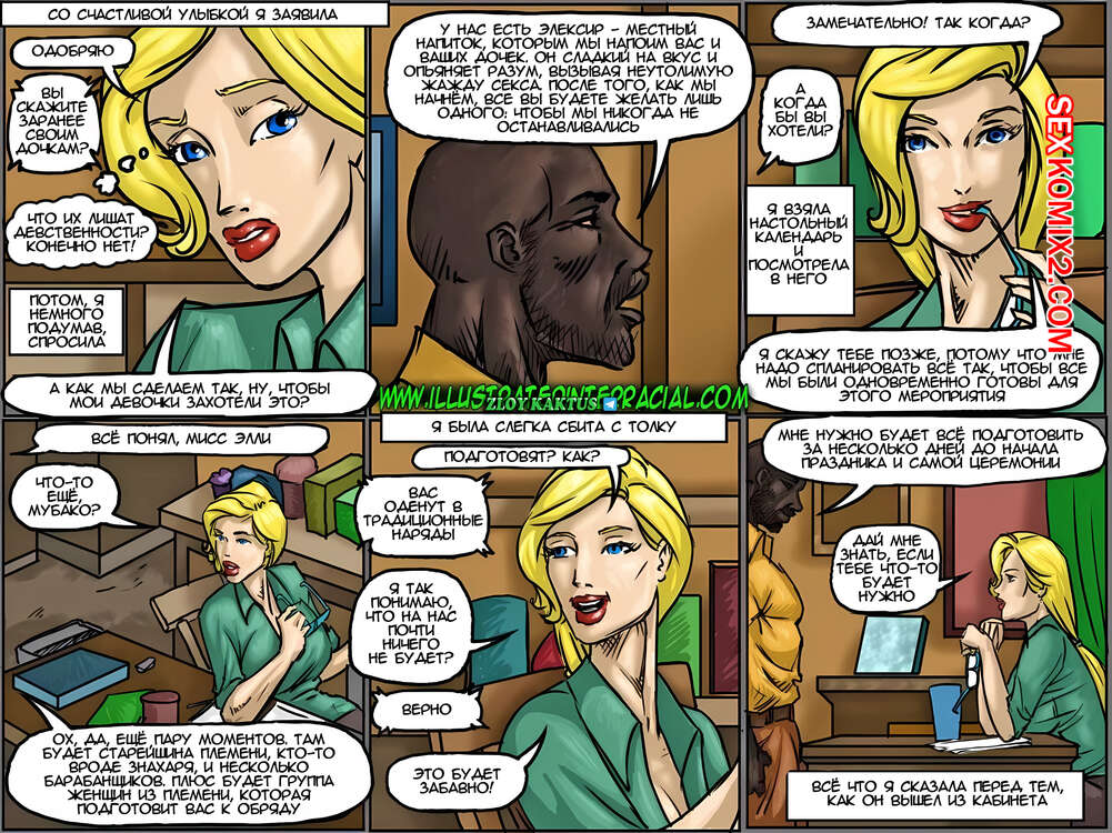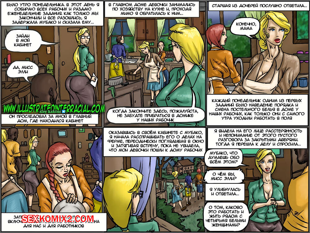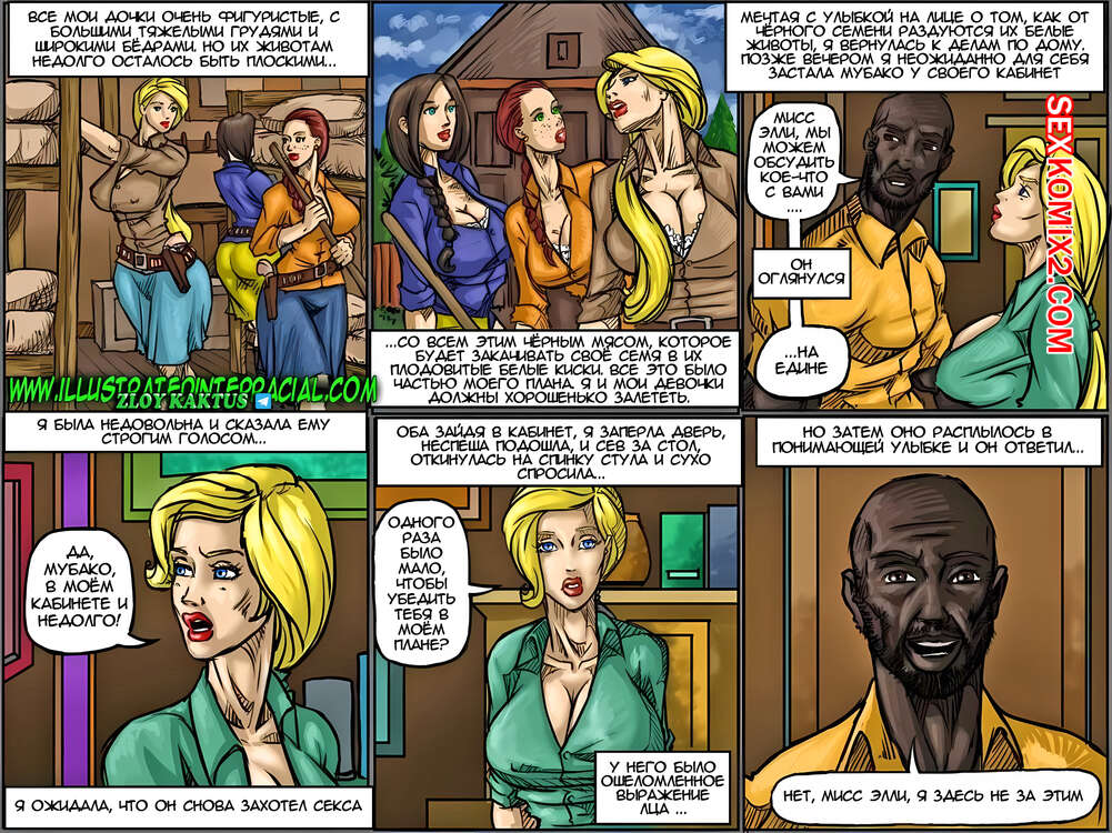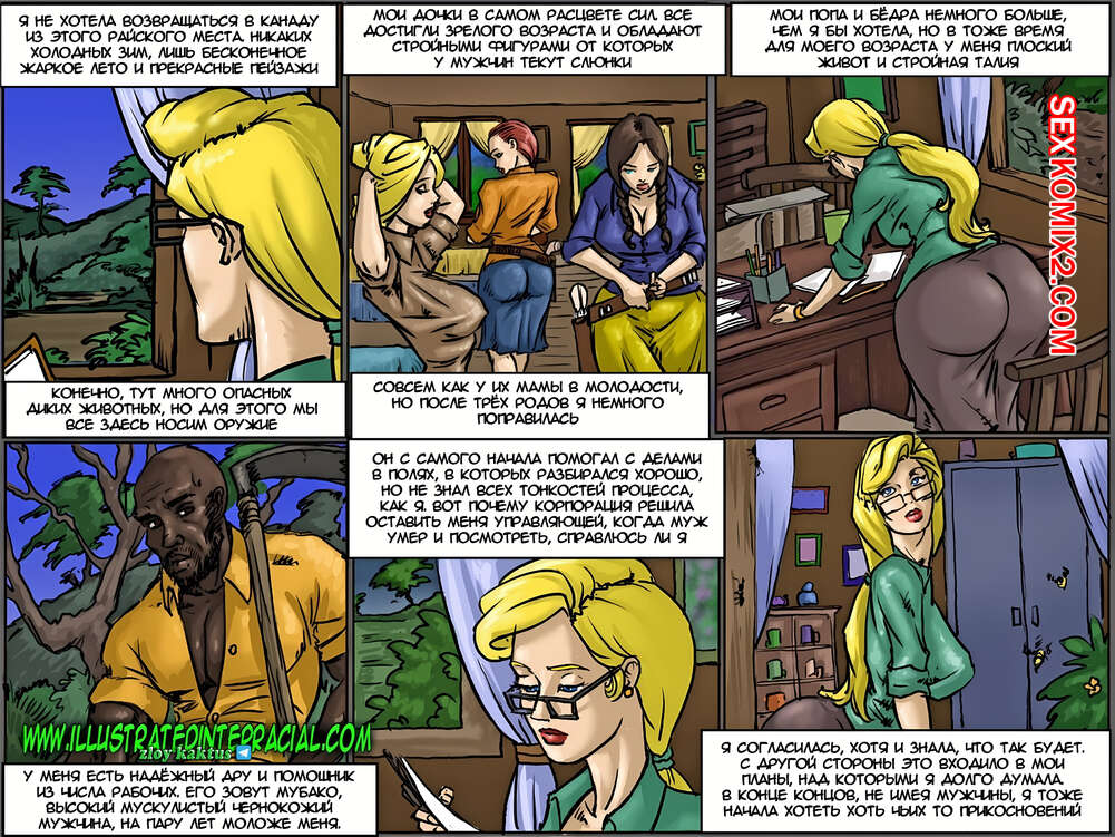 Порно комикс Чёрное племя. The Black Tribe. В далёкой африканской стране белые люди создают фермы и осваивают земли. На одной из таких ферм живёт и управляет хозяйством вдова со своими молодыми красивыми дочками. Так непросто работать и жить белым женщинам, окруженными только чёрными мужчинами - работниками их фермы. Из-за этого у их матери созревает план, который должен кардинально изменить их жизнь.