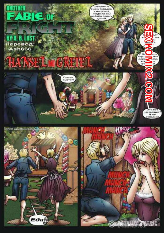 Порно комикс Гензель и Гретель Сисястая ведьма брюнетка решила повеселиться с молодой горячей красоткой. Она раздела ее и дала ей отлизать свою пизденку, после чего хорошенько выебала ее с помощью метлы.