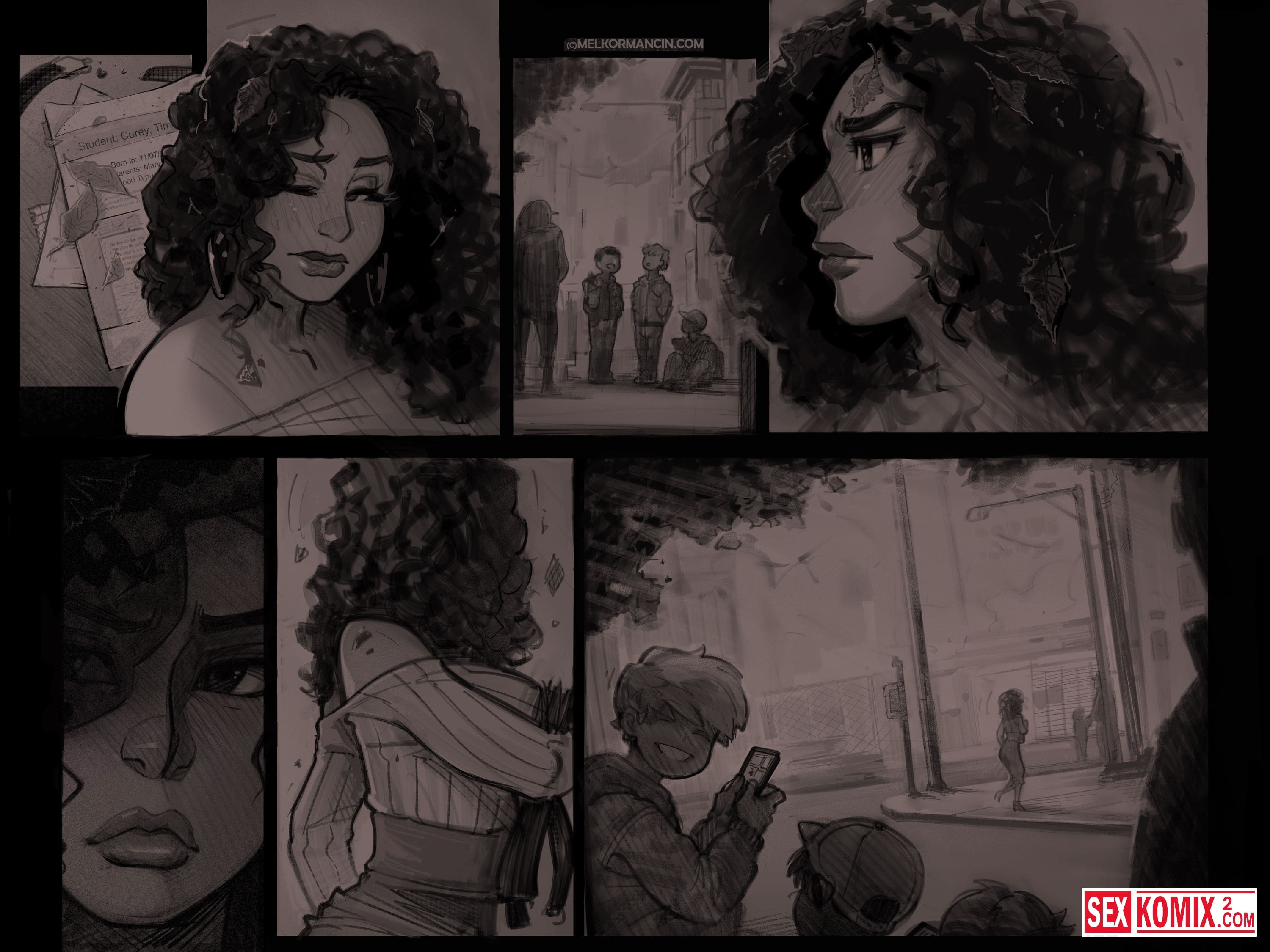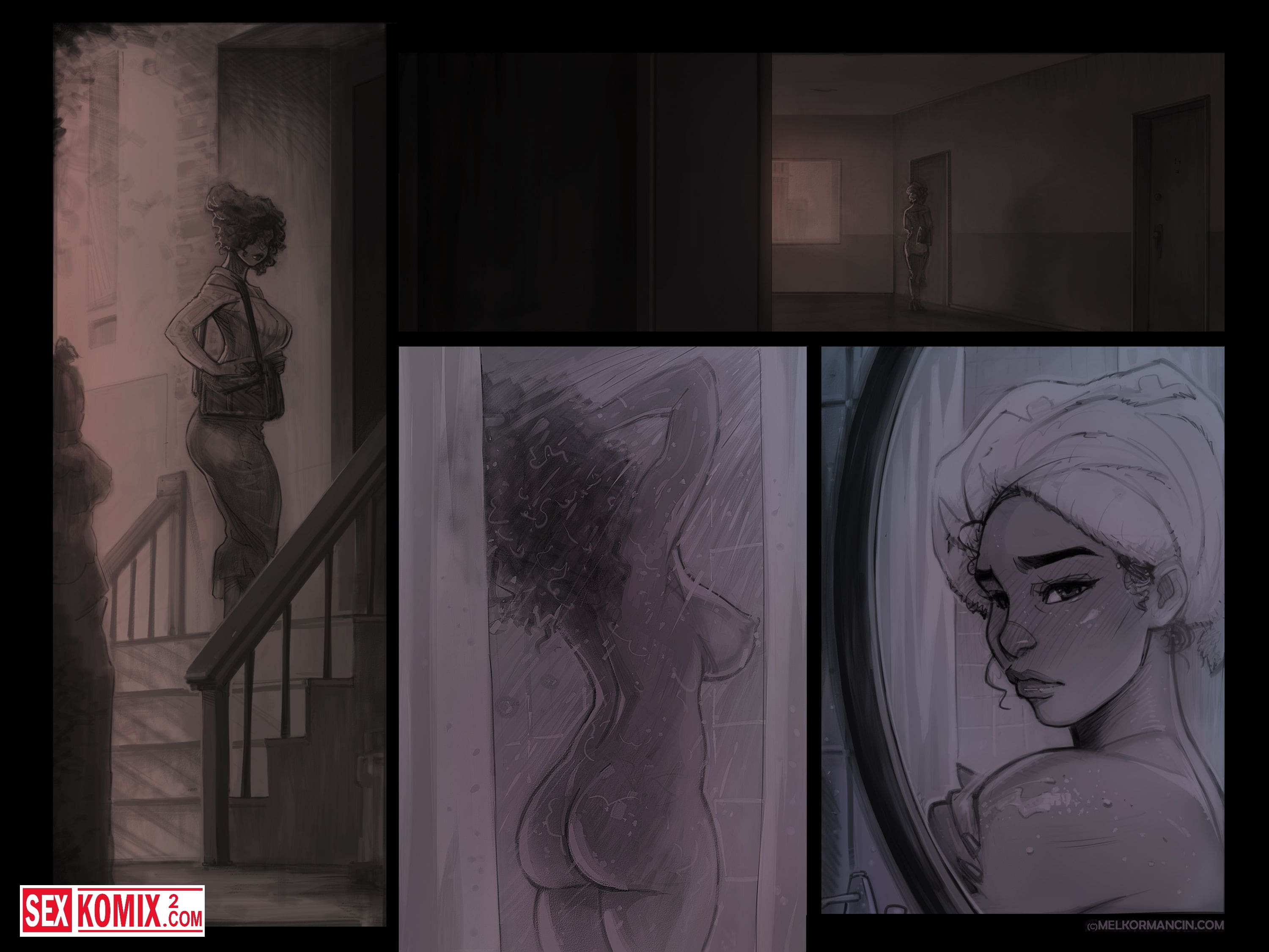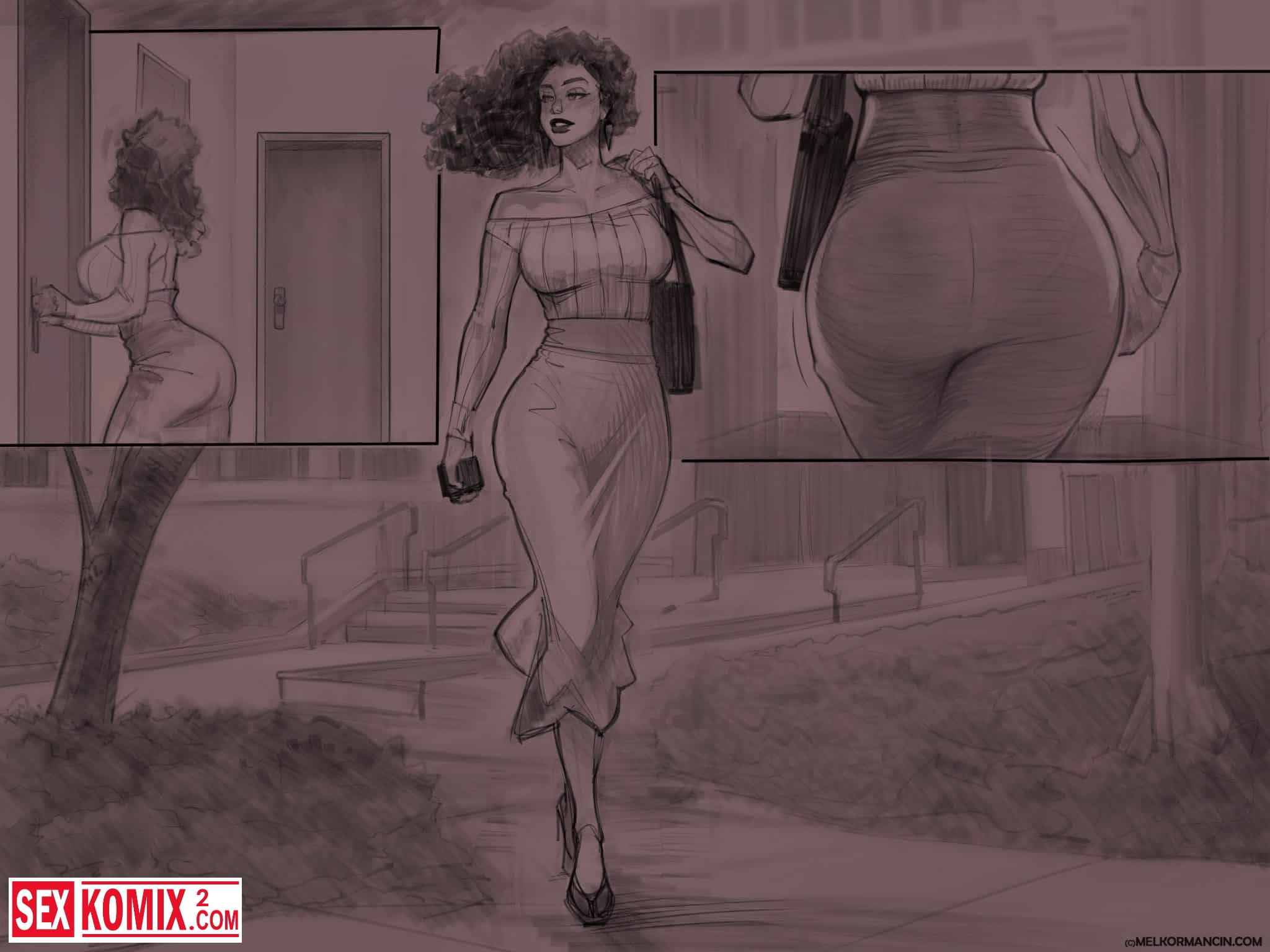 Полная версия. Порно комикс Подавленность. Сексуальная учительница после горячего секса отправилась домой. Горячая мулатка не может забыть огромный член парня, который совсем недавно трахал её. Она очень хочет повторить этот опыт.