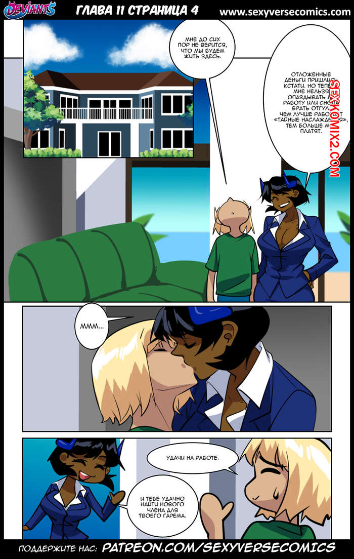 Порно комикс Извращенцы. Deviants. Часть 11. Reboot. Создание гарема Горячие сисястые красотки продолжают наслаждаться большим хуем молодого паренька. Они разделись перед ним и стали сосать его большой хуй, после чего дали ему себя выебать.