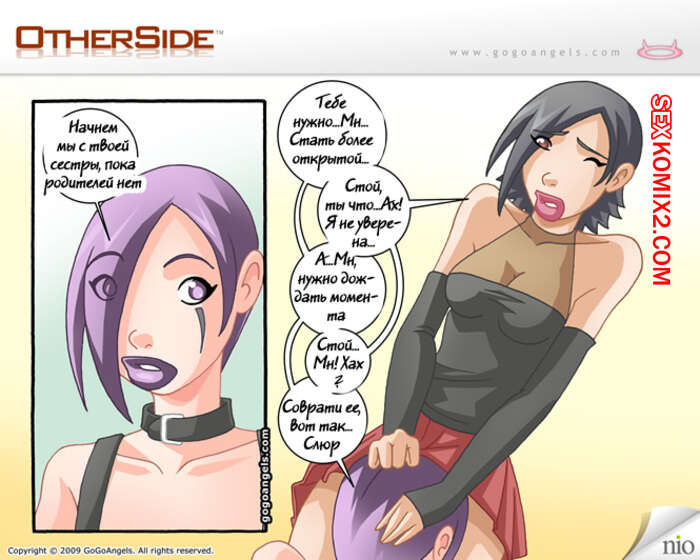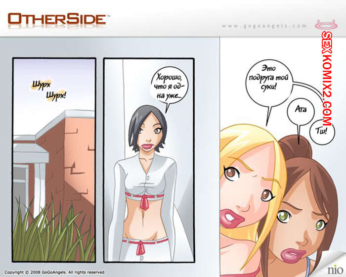 Порно комикс Gogo Angels. С другой стороны. Часть 1. The Other Side Молодой парень превратился в горячую девушку и теперь его друзья и подруги решили воспользоваться его телом. Они раздевают его и ласкают, после чего хорошенько с ним трахаются.
