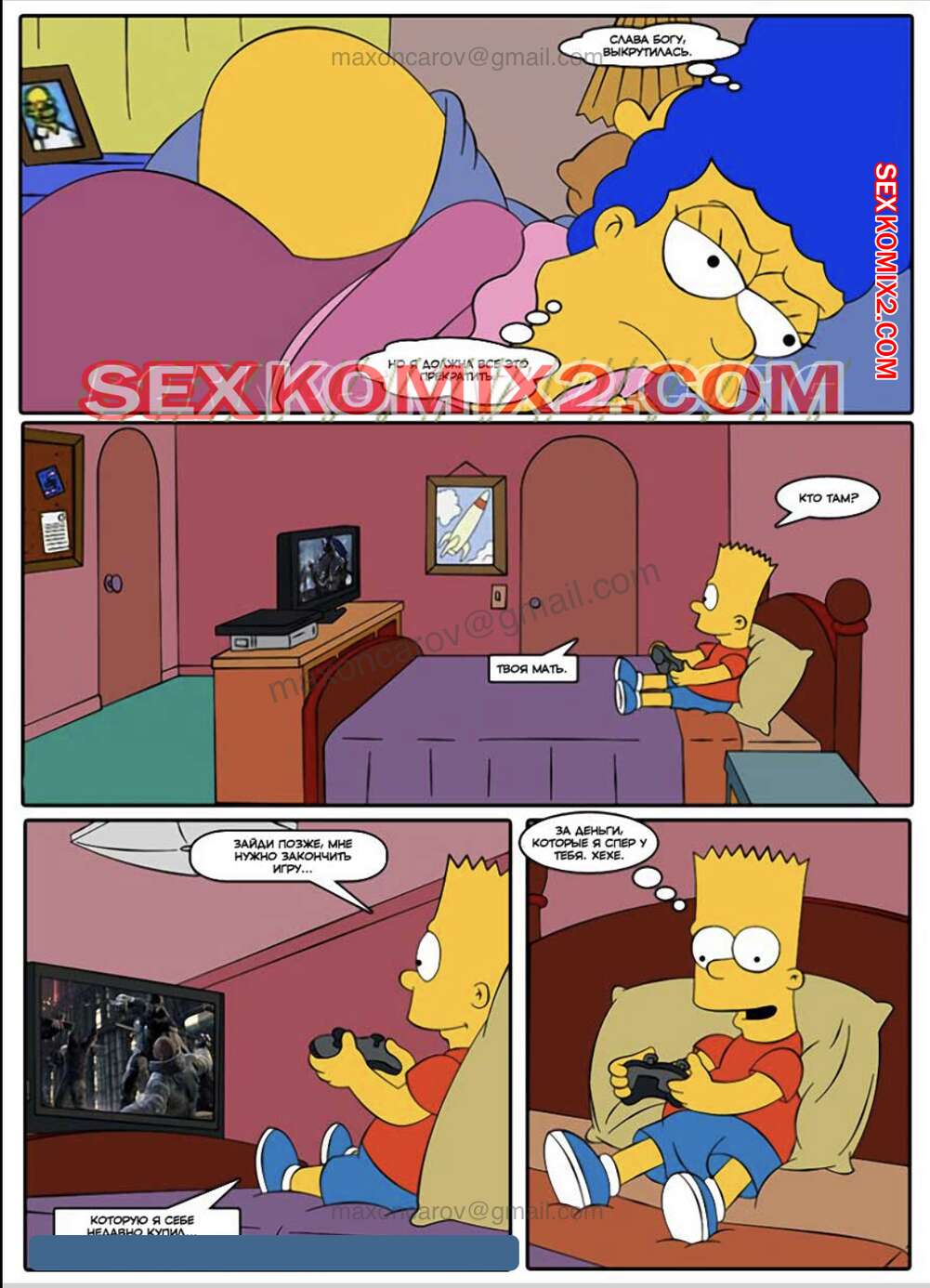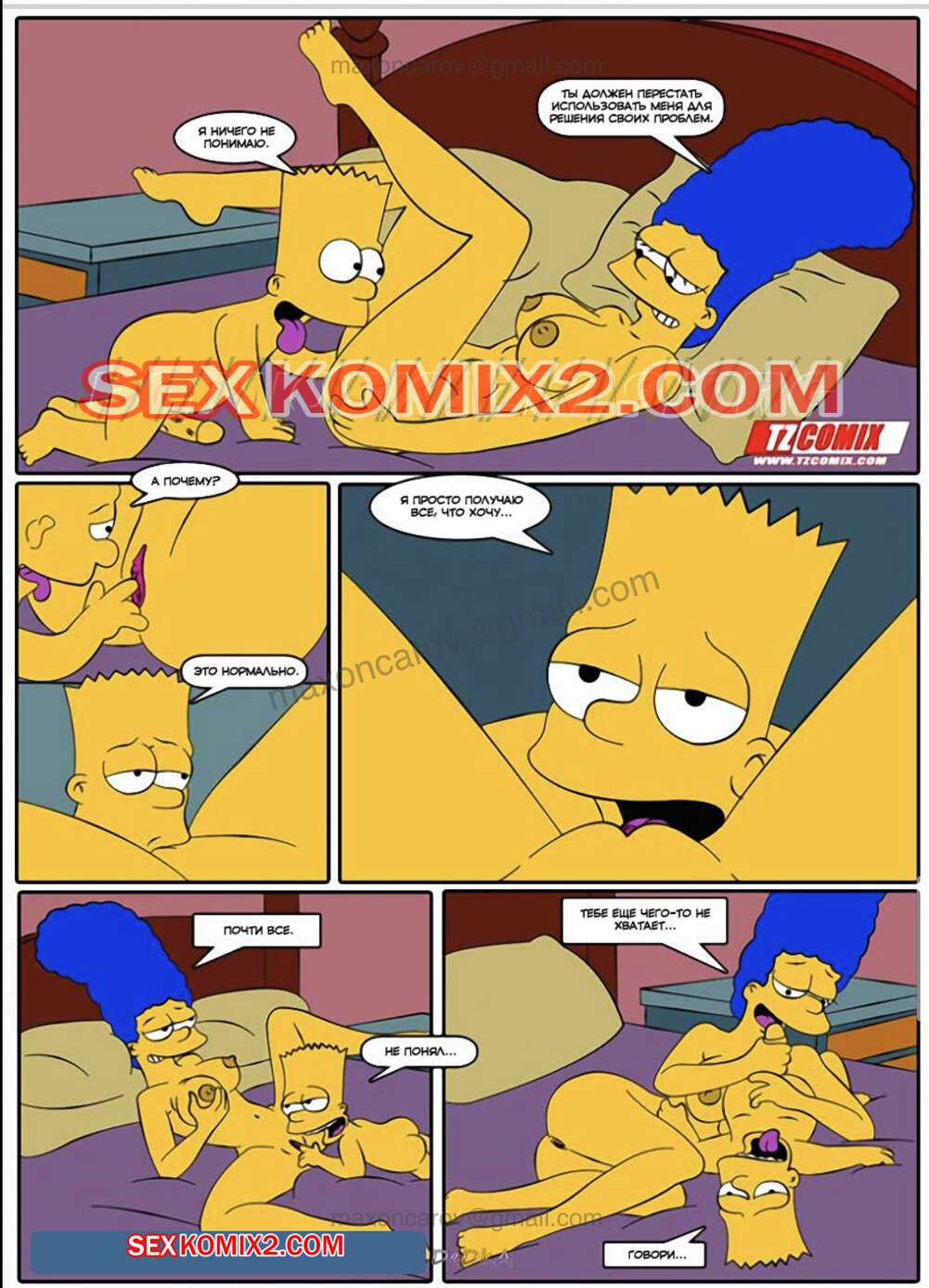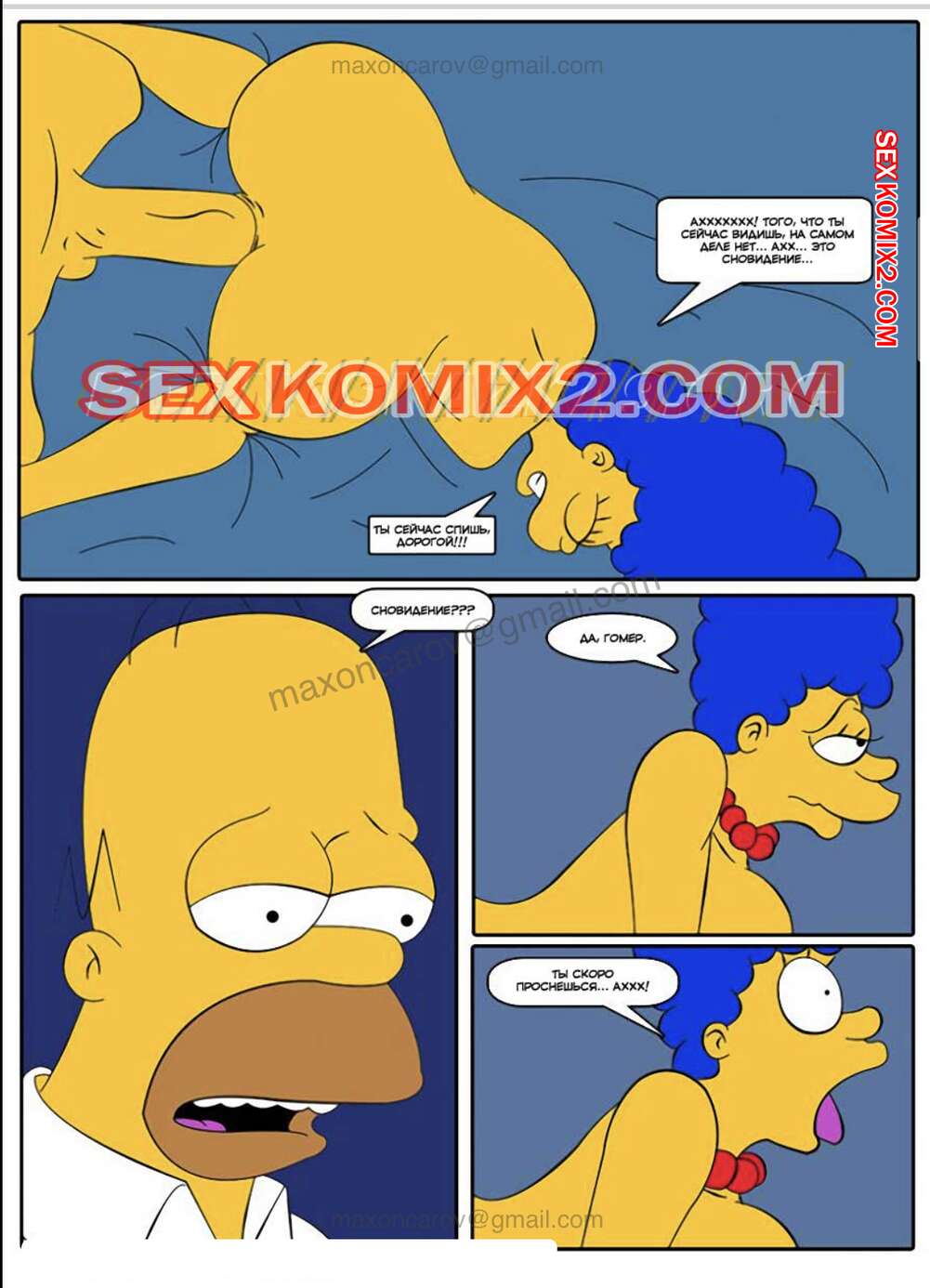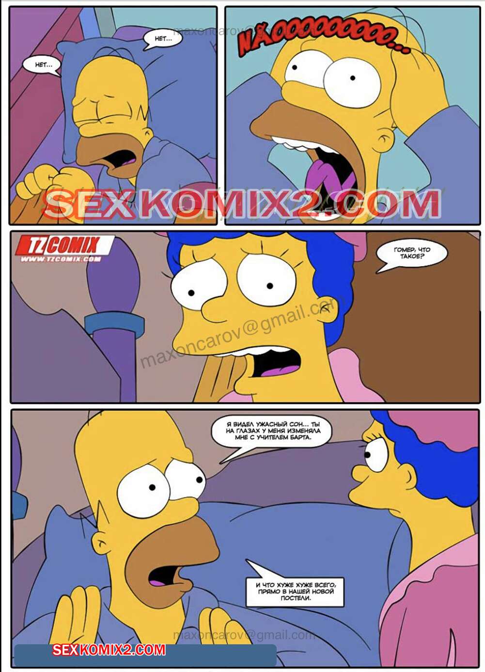 Порно комикс Симпсексы. Часть 3. Кошмарный сон Гомера. HQPorno TZComiX Гомеру приснился кошмар, в котором его красотка жена трахалась с его другом. Проснувшись, он понял, что это сон, и продолжил спать, а Мардж отправилась трахаться со своим сыном.
