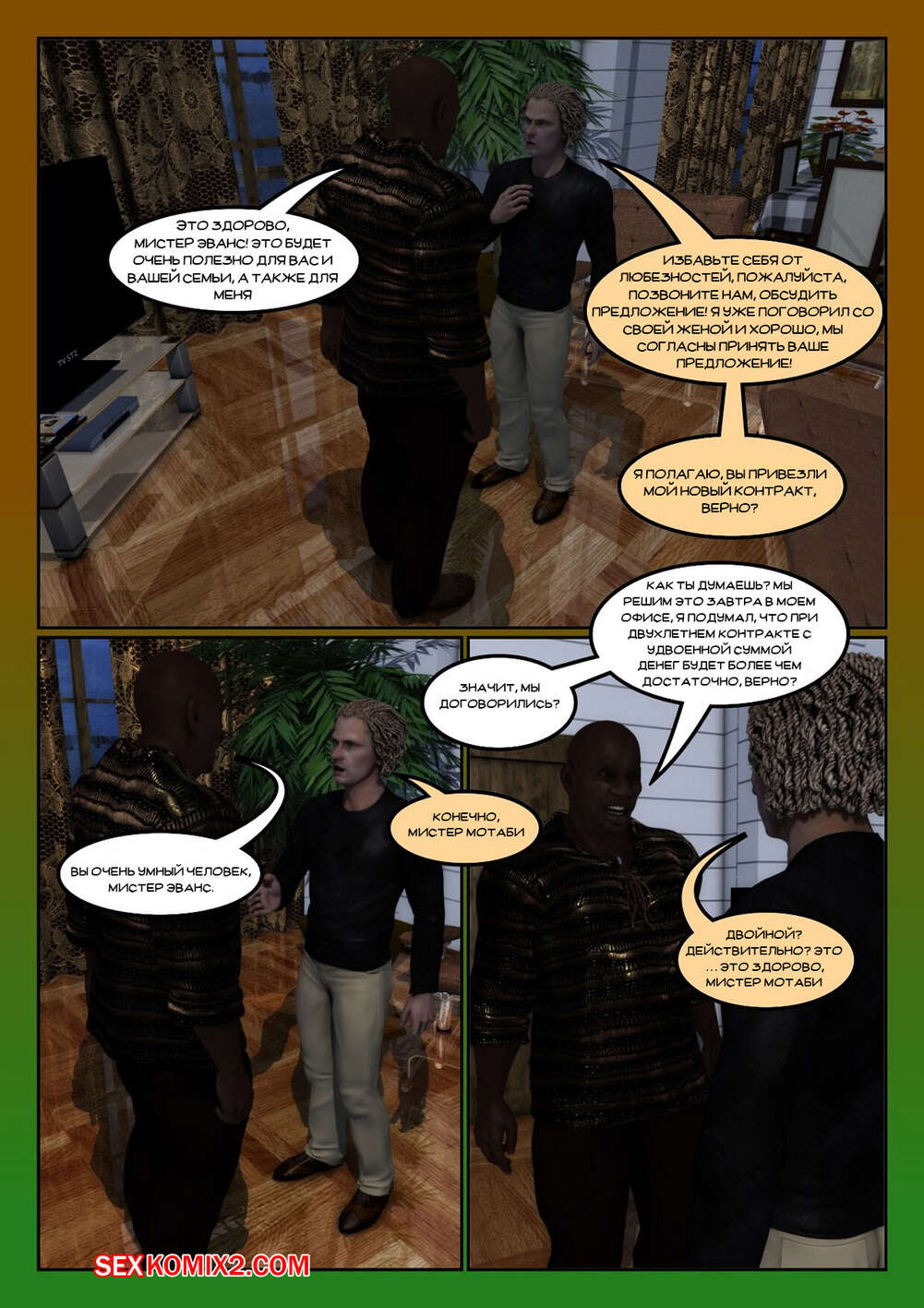 Порно комикс Африканизированный. Часть 1. Africanized Парень задолжал черному мужику и теперь его жене предстоить ублажить его. Красотка надела сексуальное белье и стала сосать большой черный хуй парня, после чего дала ему себя выебать.