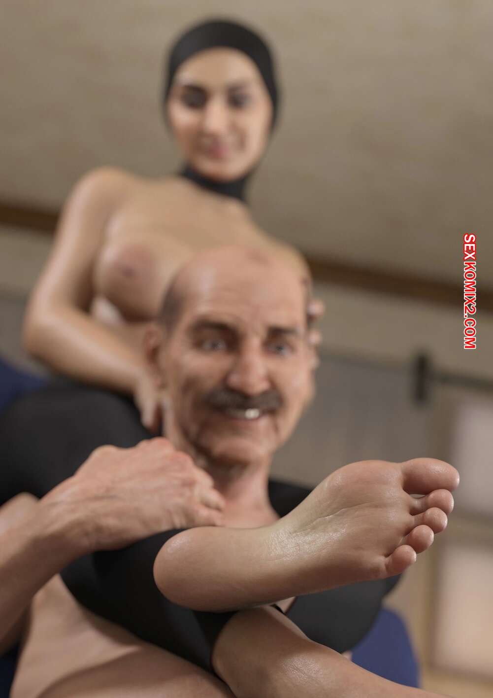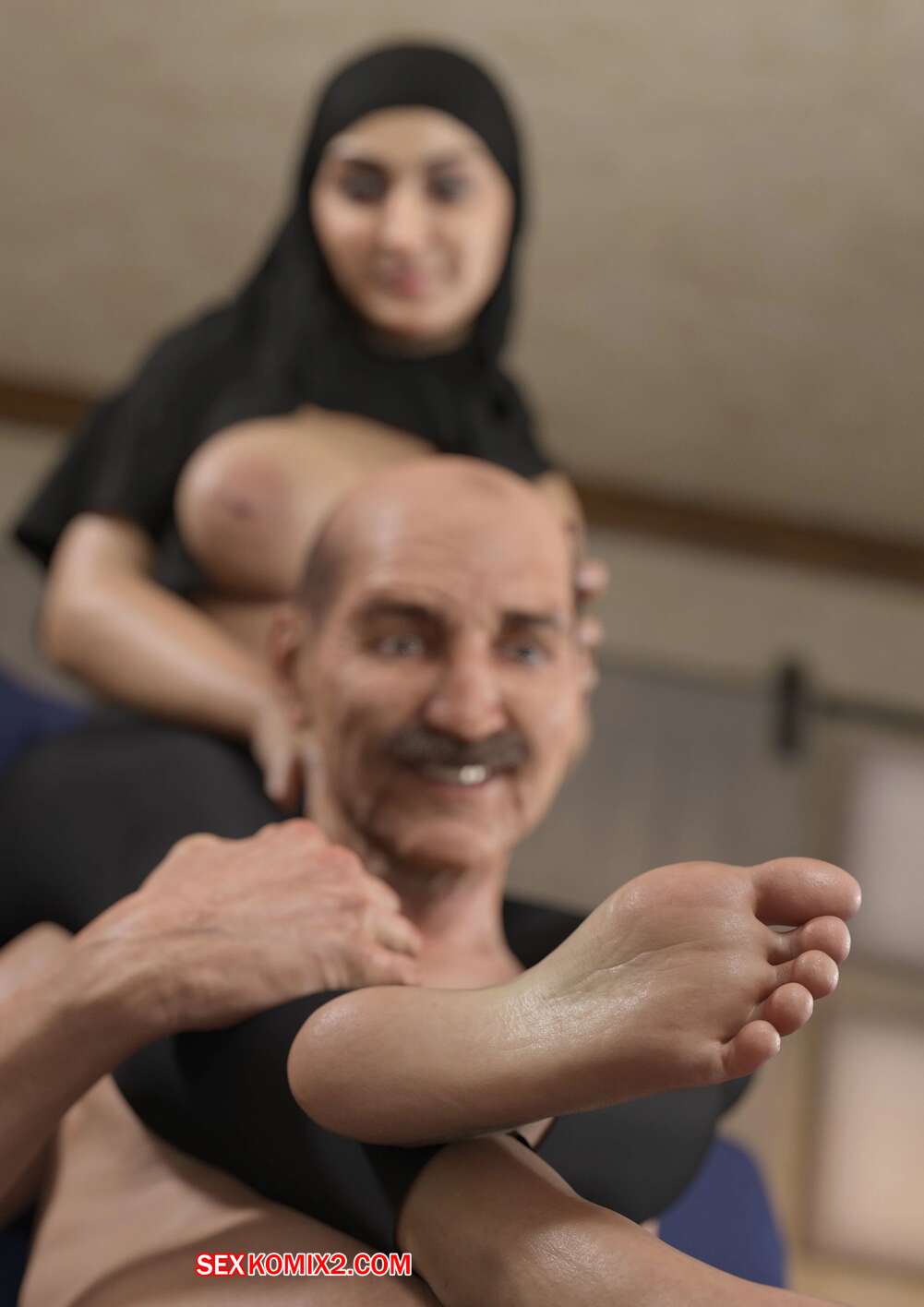 Порно комикс Fatima. VforVendettaV Сисястая милфа брюнетка была очень возбуждена и решила повеселиться с пожилым мужиком. Она разделась перед ним и возбудила его своим шикарным телом, после чего оседлала его лицо и дала ему вылизать свою пизденку.