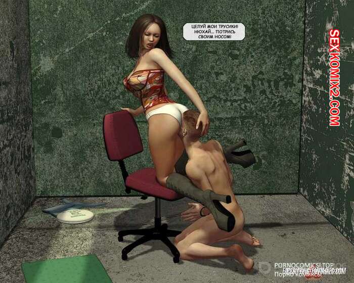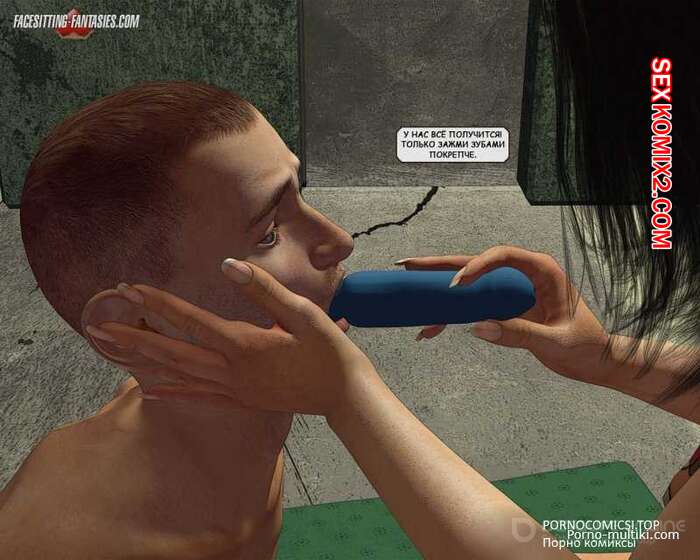 Порно комикс Заключённый Горячая сисястая брюнетка держит у себя в плену парня. Она пришла к нему и разделась перед, после чего дала ему отлизать свою пизденку и с помощью парня кончила себя дилдаком.