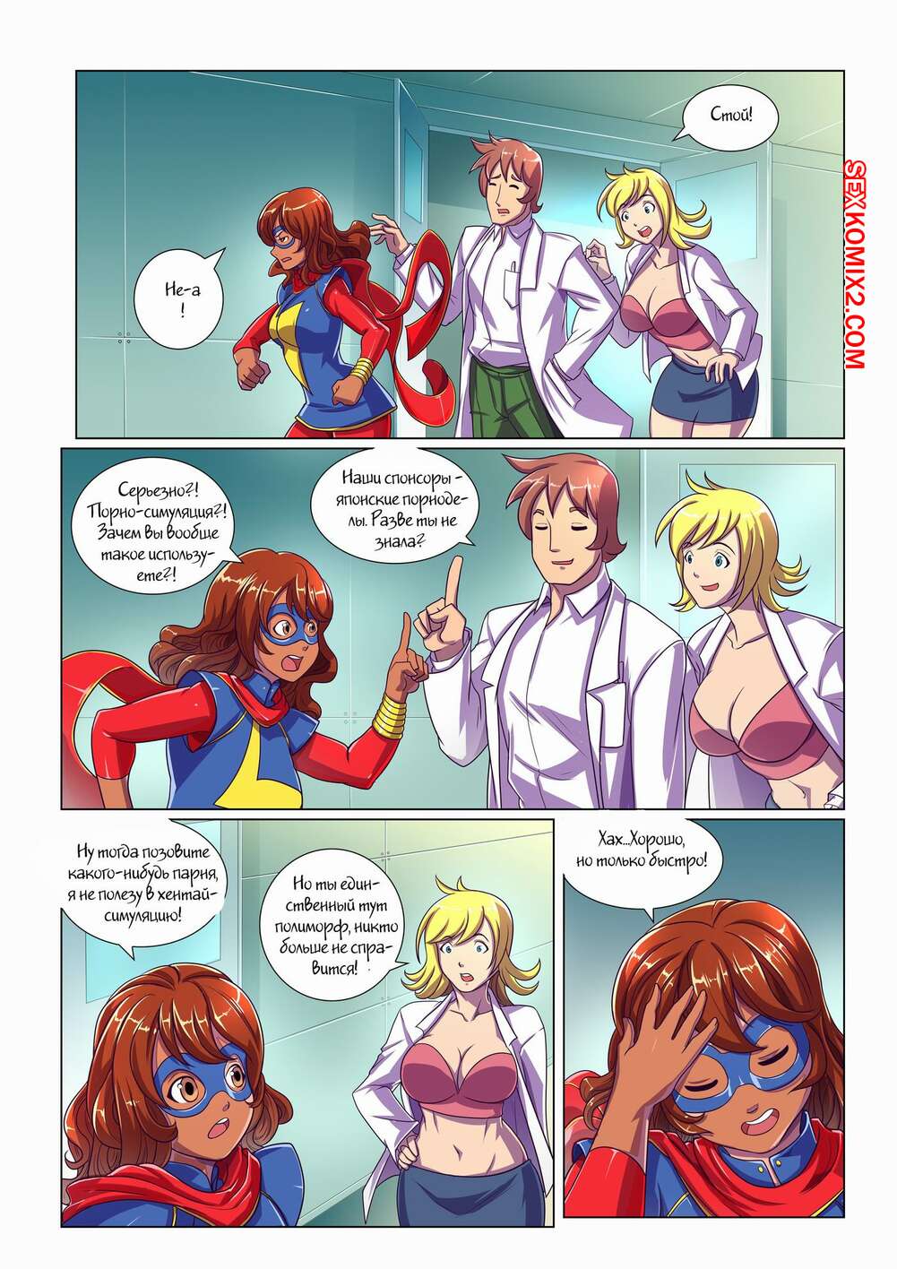 Порно комикс Виртуальный кошмар. Ms Marvel. Virtual Nightmare Горячая сисястая брюнетка супергероиня оказался в виртуальной реальности. Там ее схватил монстр с щупальцами, которые раздел красотку и хорошенько выебал ее во все дырочки.