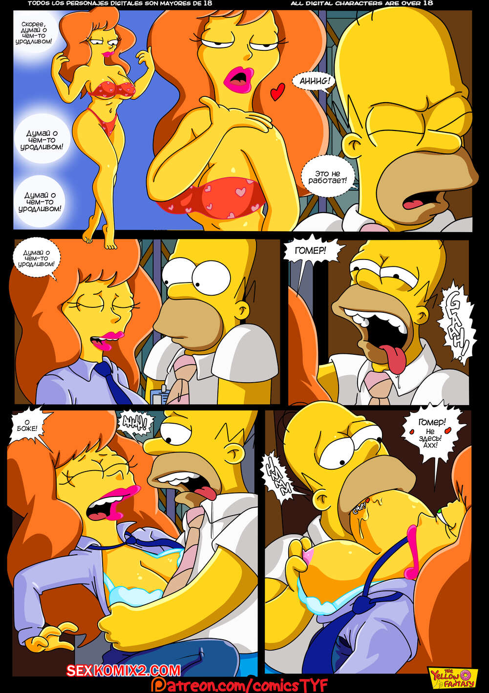 Порно комикс Симпсоны. Желтая фантазия. The Simpsons. The Yellow Fantasy. Amor Radioactivo С Гомером начали твориться какието странности. Ему постоянно перед глазами кажется голая сексуальная брюнетка с шикарным телом, которая очень возбуждает парня.