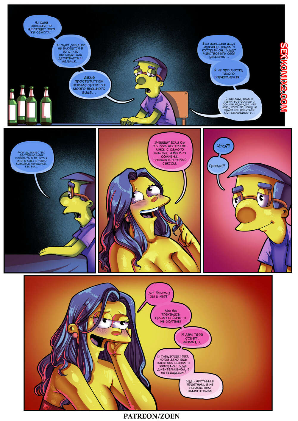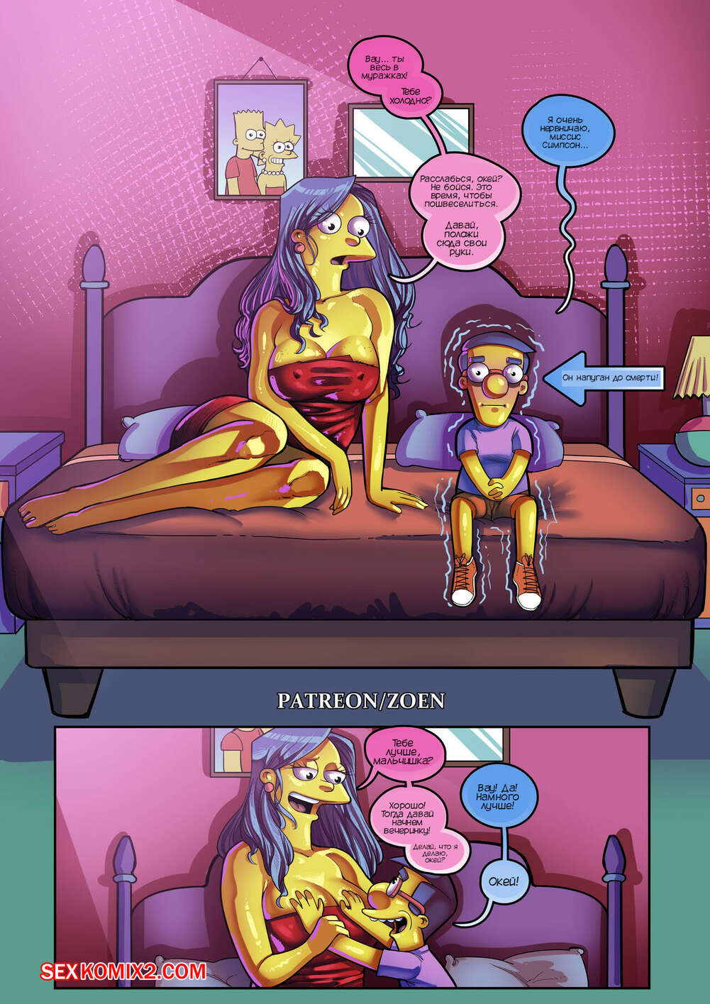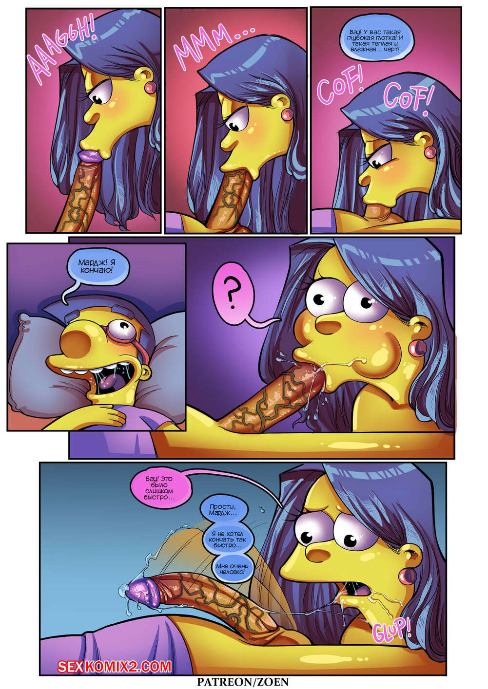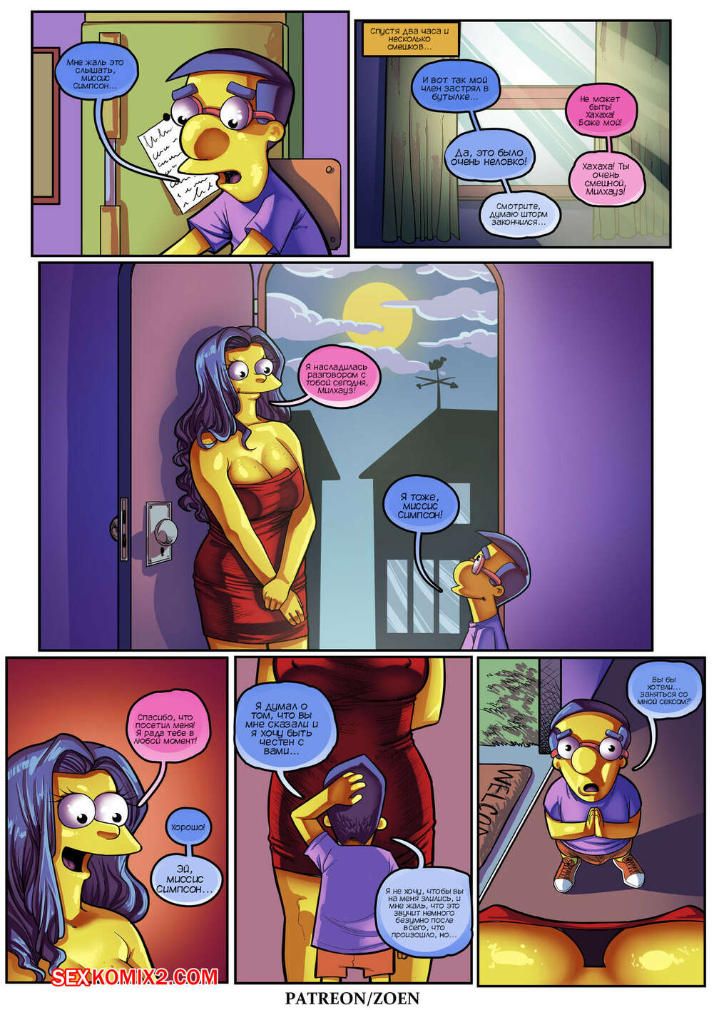 Порно комикс Симпсоны. Мать моего лучшего друга. Часть 2. The Simpsons. Zoen Сисястая милфа Мардж проснулась и услышала звонок в дверь. Это к ней пришел Милхауз, который нашел порно видео с милфой в интернете и решил этим воспользоваться.