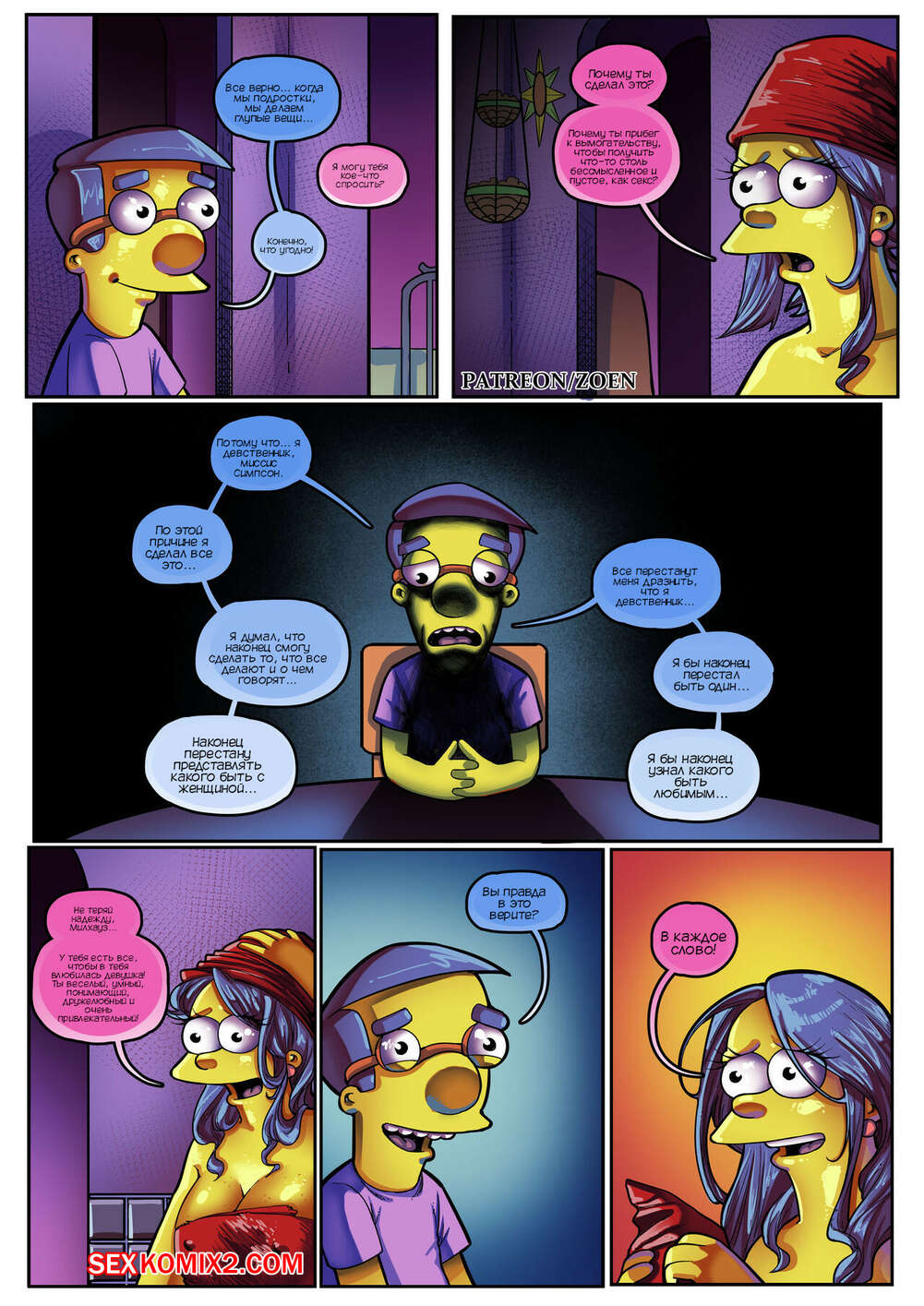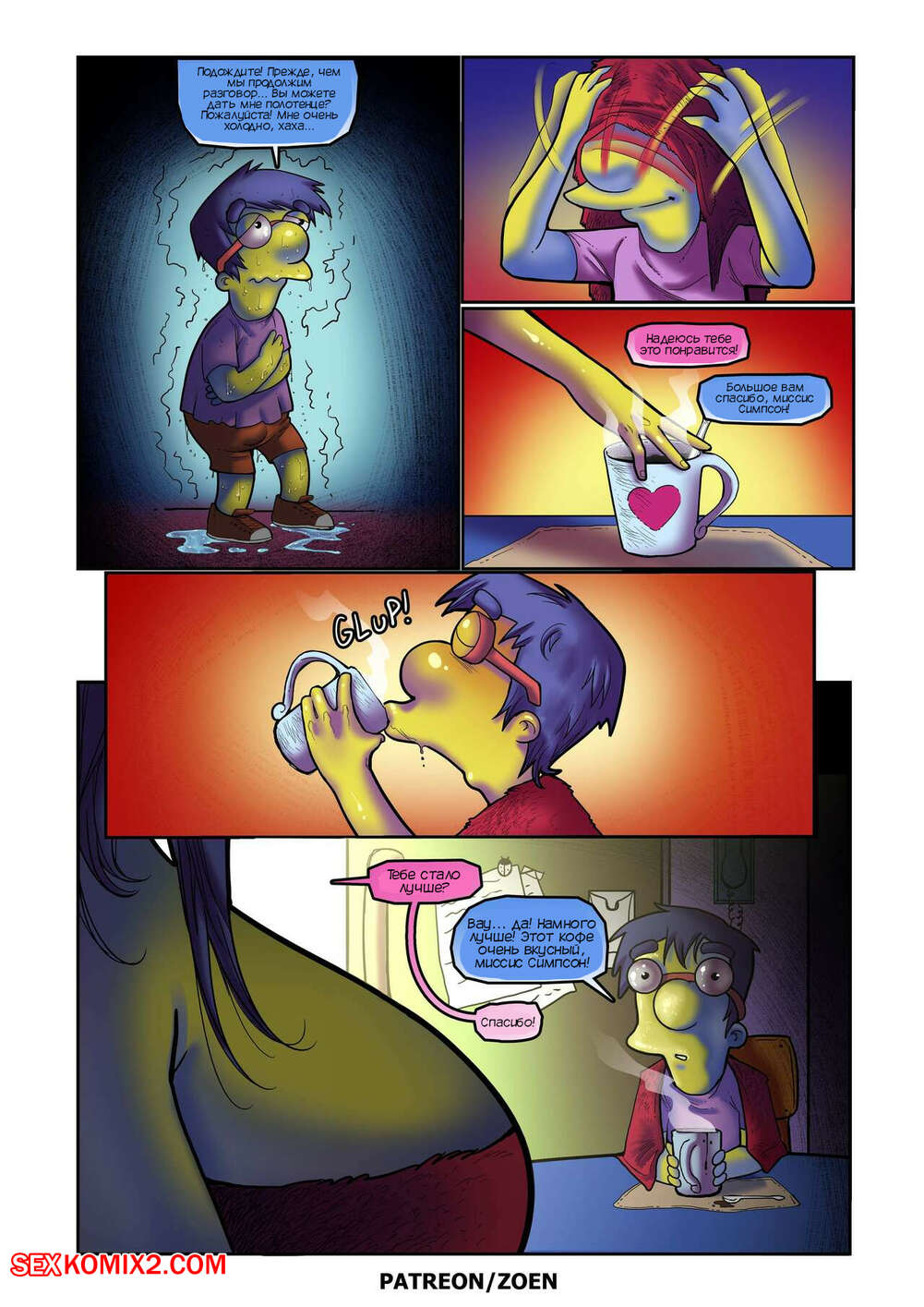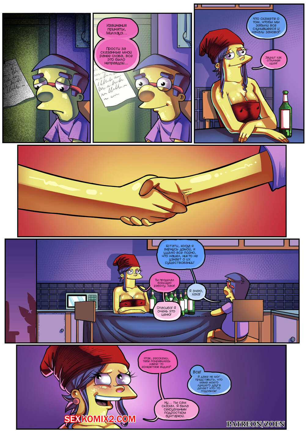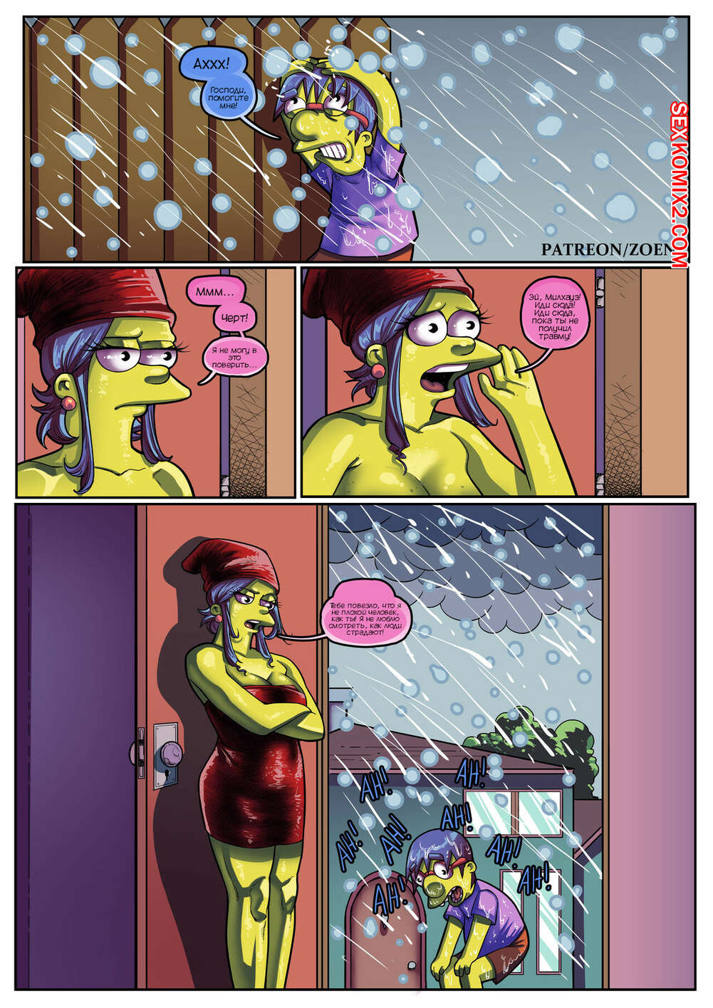 Порно комикс Симпсоны. Мать моего лучшего друга. Часть 2. The Simpsons. Zoen Сисястая милфа Мардж проснулась и услышала звонок в дверь. Это к ней пришел Милхауз, который нашел порно видео с милфой в интернете и решил этим воспользоваться.