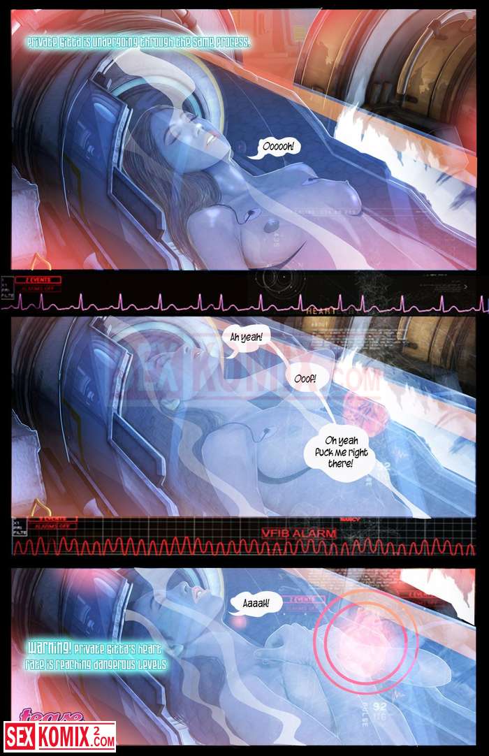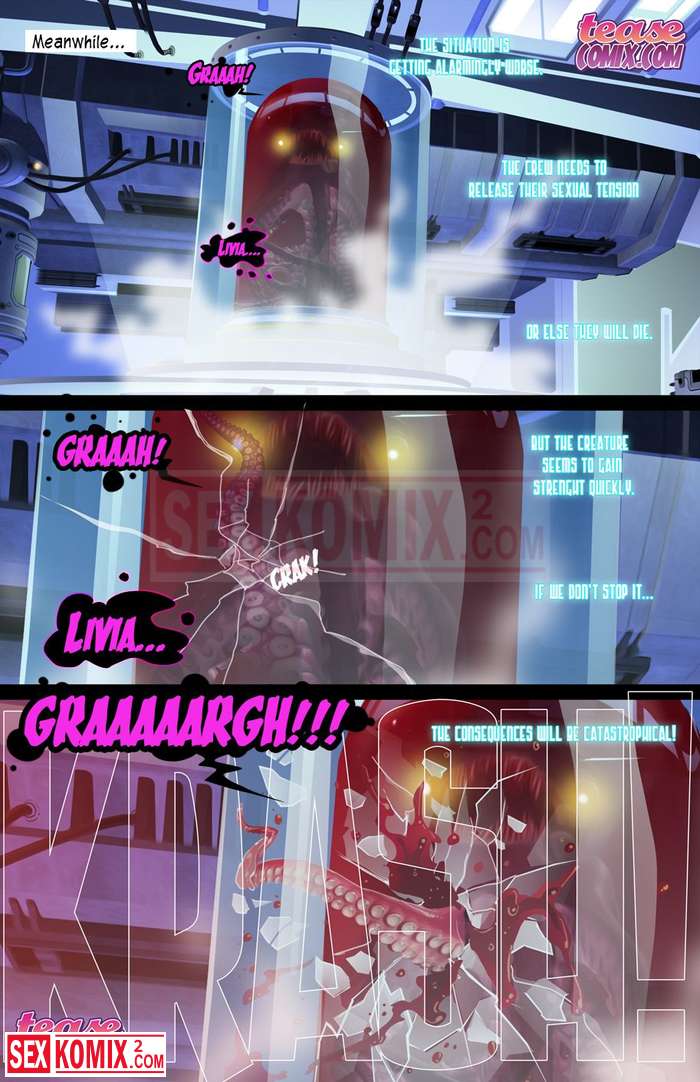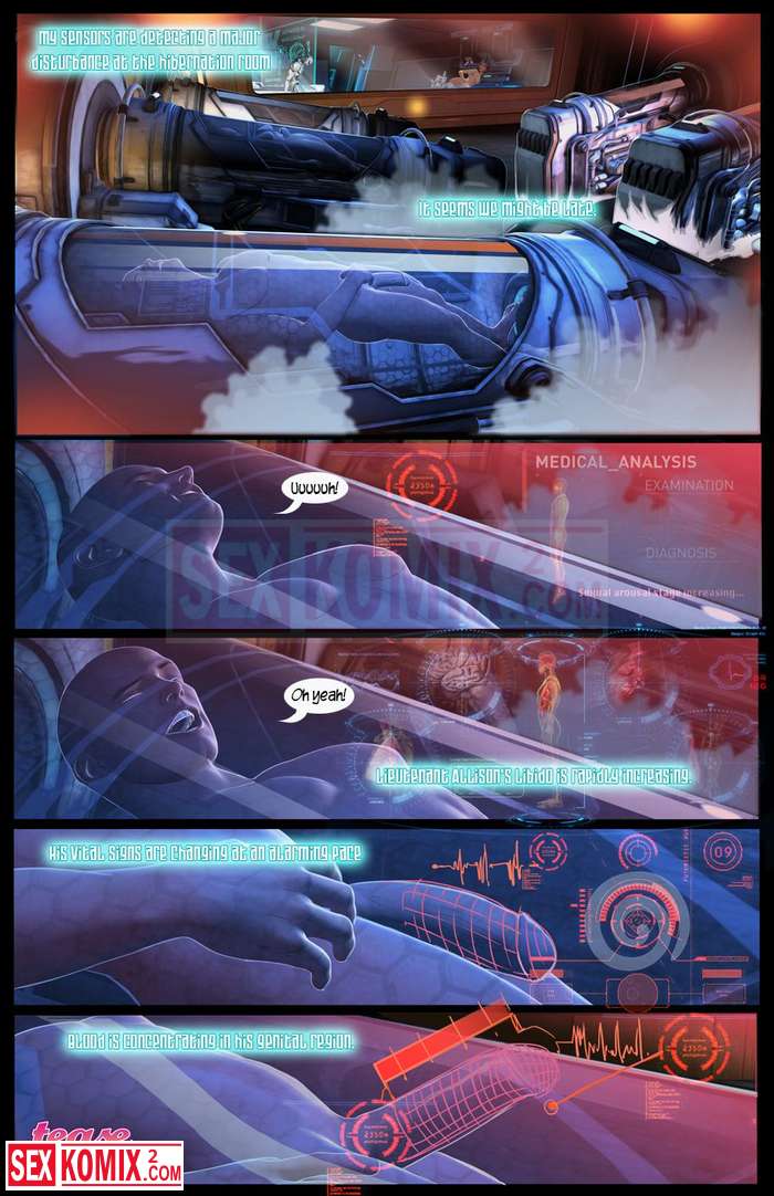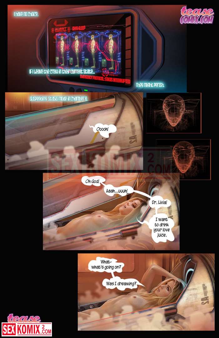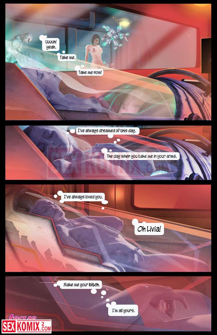 Порно комикс Похотливая Ливия. Часть 2. Английский. Робот на борту корабля выполняет много функций и одна из самых приятных это ублажать девушек в команде.