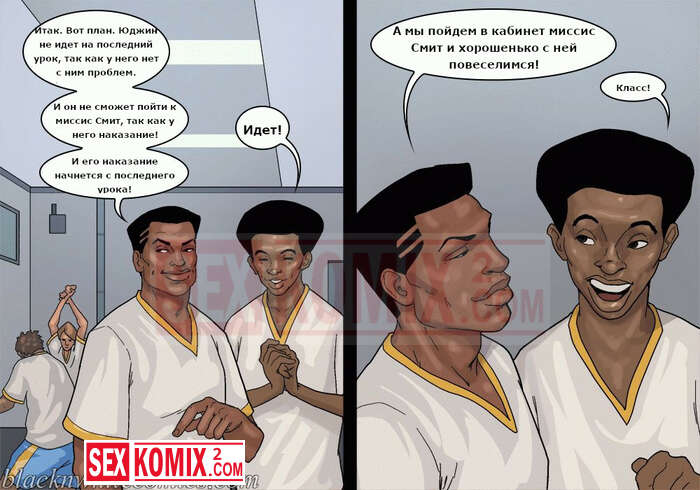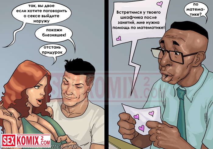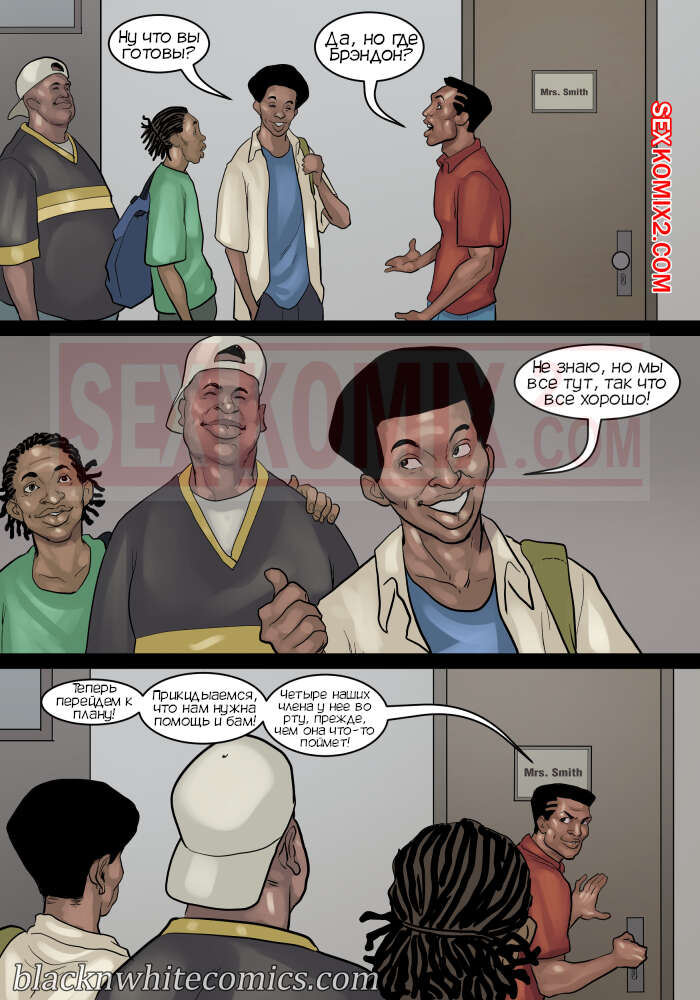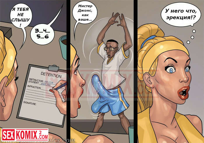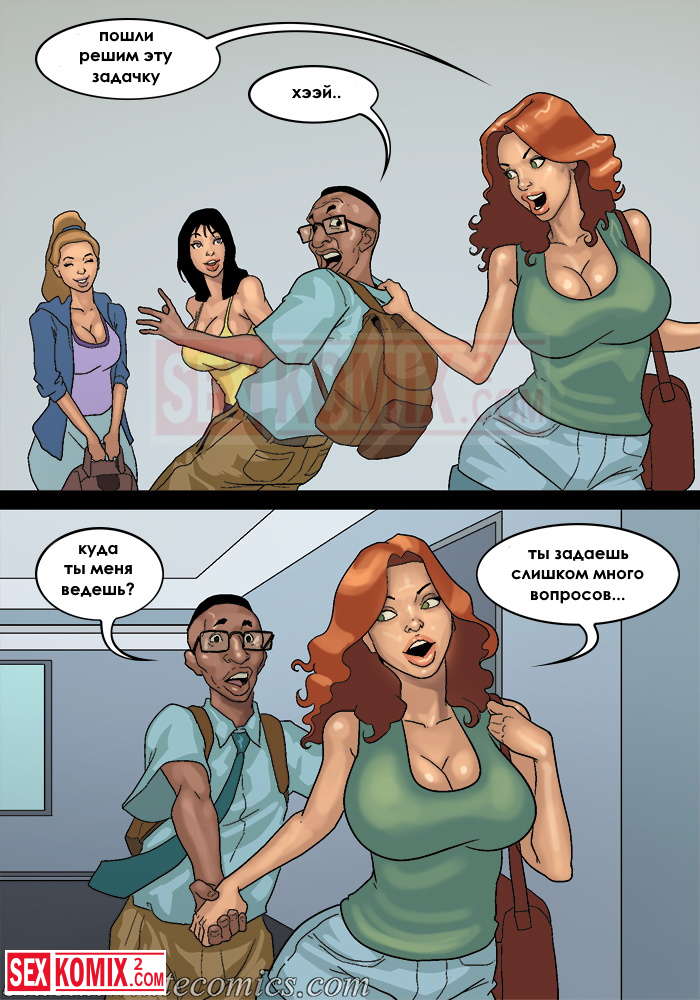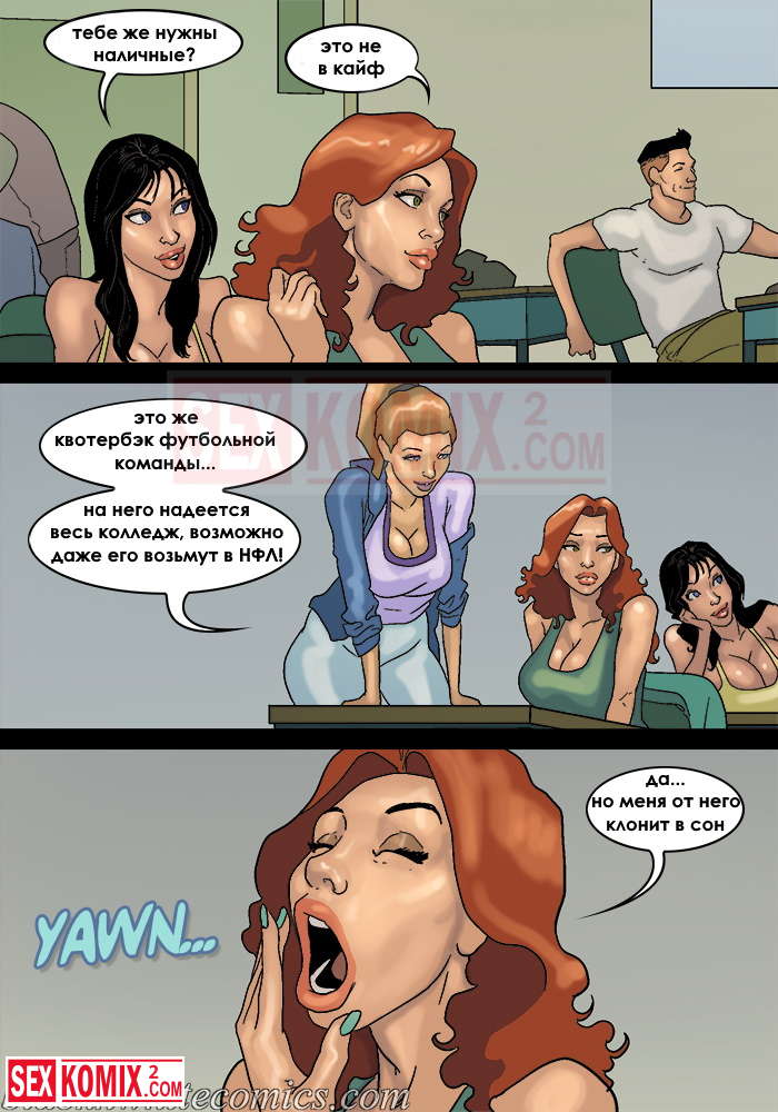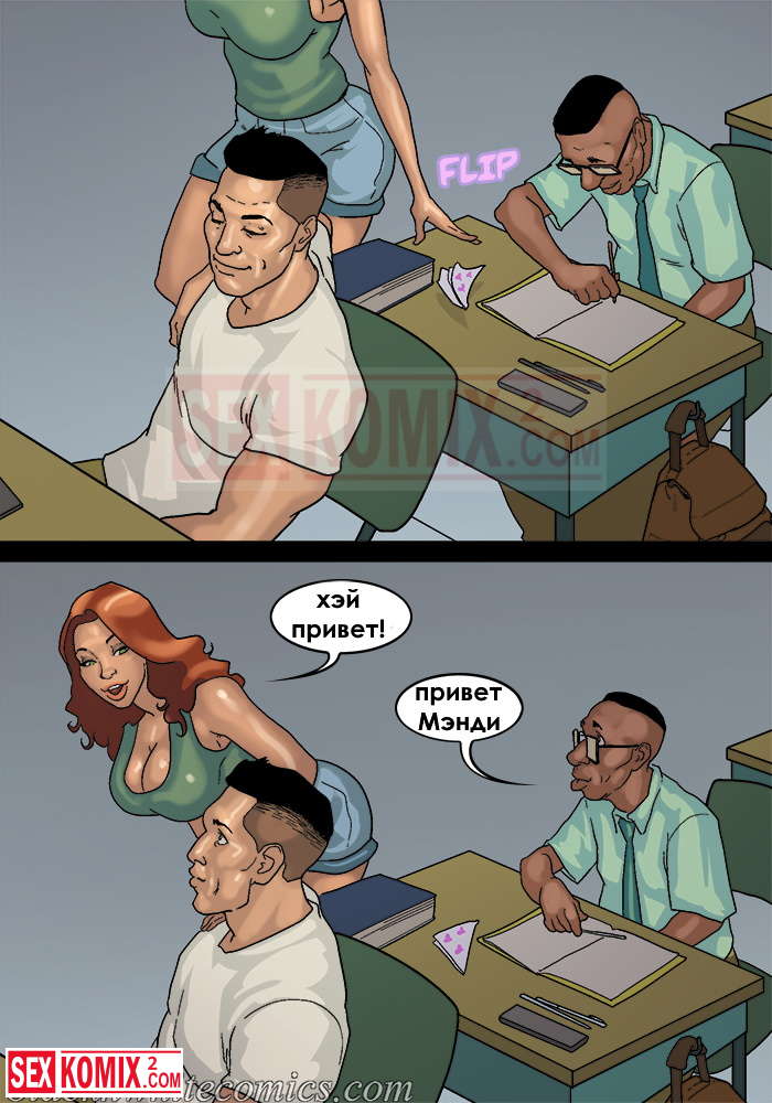 Порно комикс После уроков. Часть 3. Озабоченные девушки снова донимают парня с огромным членом. Они договариваются и трахаются в ним по очереди во время перерыва. Как парень всё это выдерживает смотрите в этой истории.