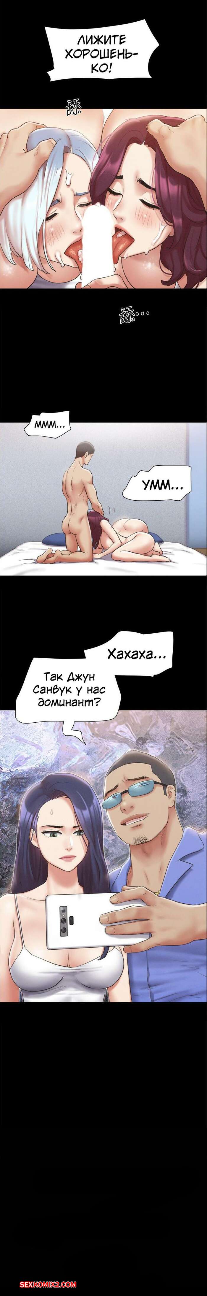 Порно комикс На все согласные. Части 121 и 122. Everything Is Agreed Горячие сексуальные красотки были очень возбуждены и хотели трахаться. Они разделись перед парнем и стали сосать его большой хуй, после чего дали ему себя хорошенько выебать.