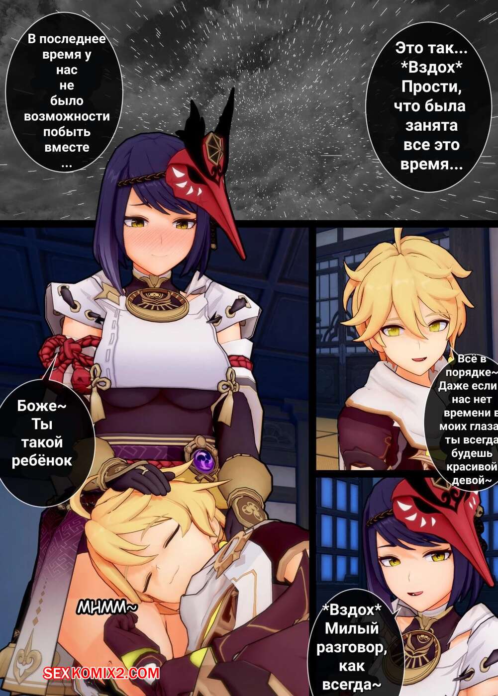 Порно комикс Genshin Impact. Любовь Сарысан. actuale Горячая сисястая брюнетка была очень возбуждена и хотела трахаться. Она разделась перед своим дружком и стала сосать его большой хуй, после чего дала ему себя хорошенько выебать.