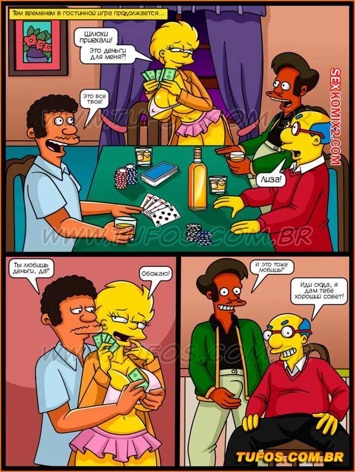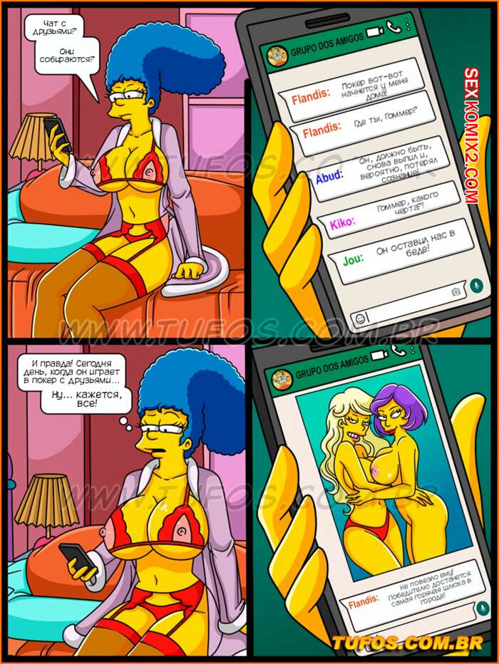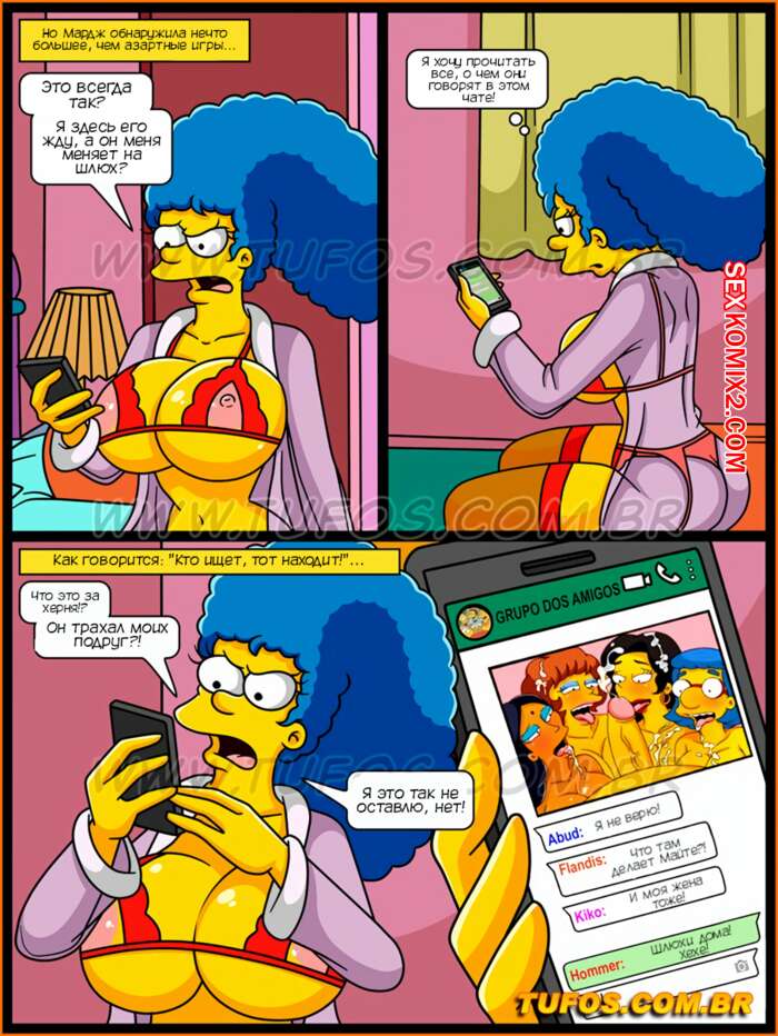 Порно комикс Симпсоны. Часть 51. Месть Мардж. Tufos Красотка Мардж спалила измену Гоммера и решила ему отомстить. Вместе с Лизой она отправилась к друзьям мужа, где красотки разделись и дали парням выебать себя во все дырочки.