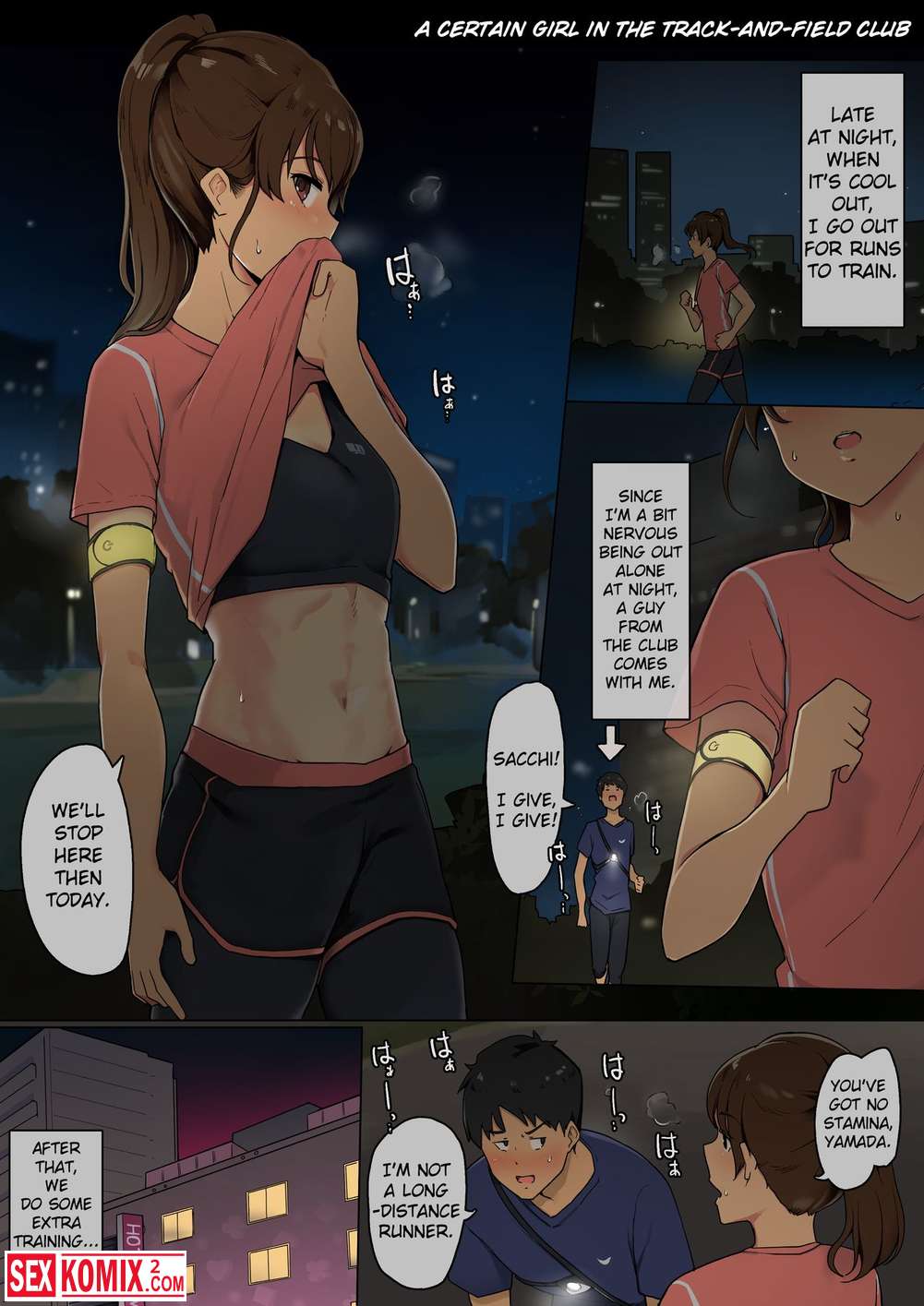 Порно комикс Девушка в легкоатлетическом клубе. Девушка легко атлет вечером встретила своего знакомого и пригласила зайти в дом, это привело их страстному сексу
