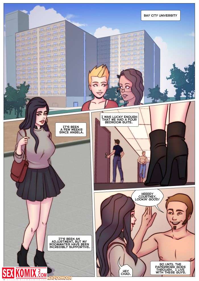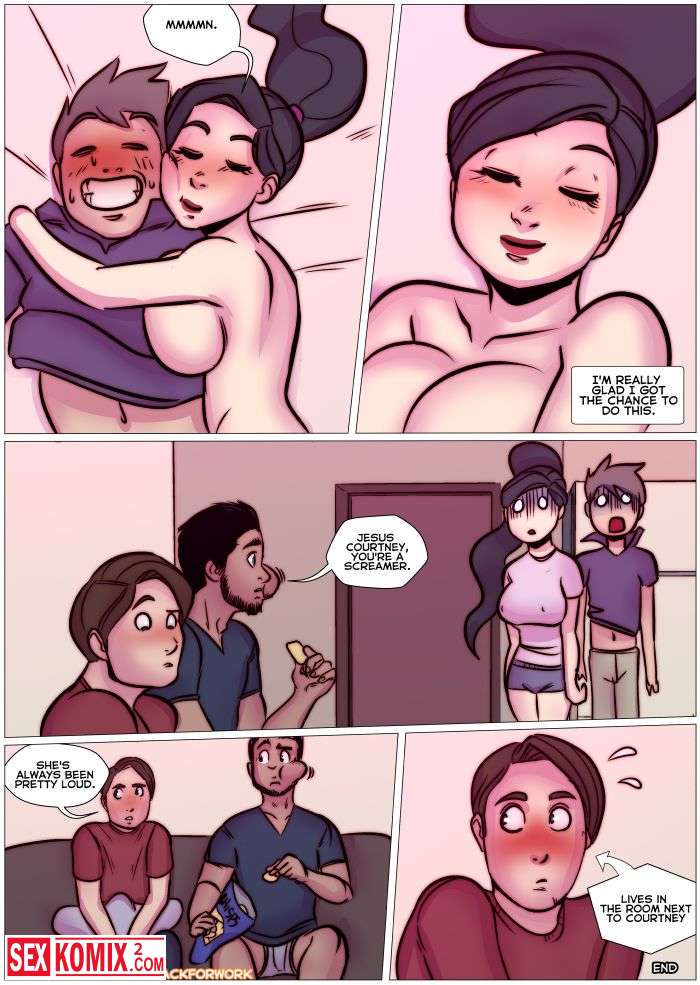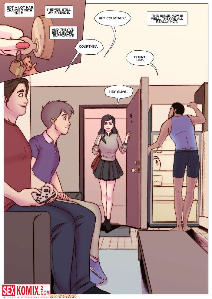 Порно комиксы Кортни и ее соседи по комнате. Английский. Парень пришел домой и увидел девушку с большими сиськами, как она мастурбирует. И помог ей закончить.