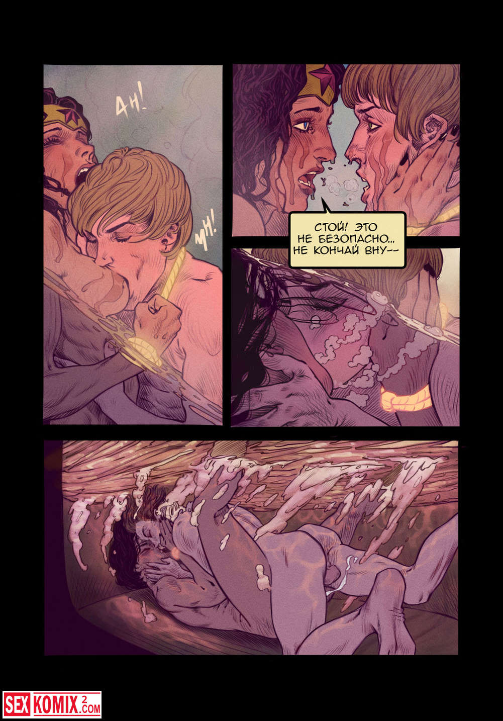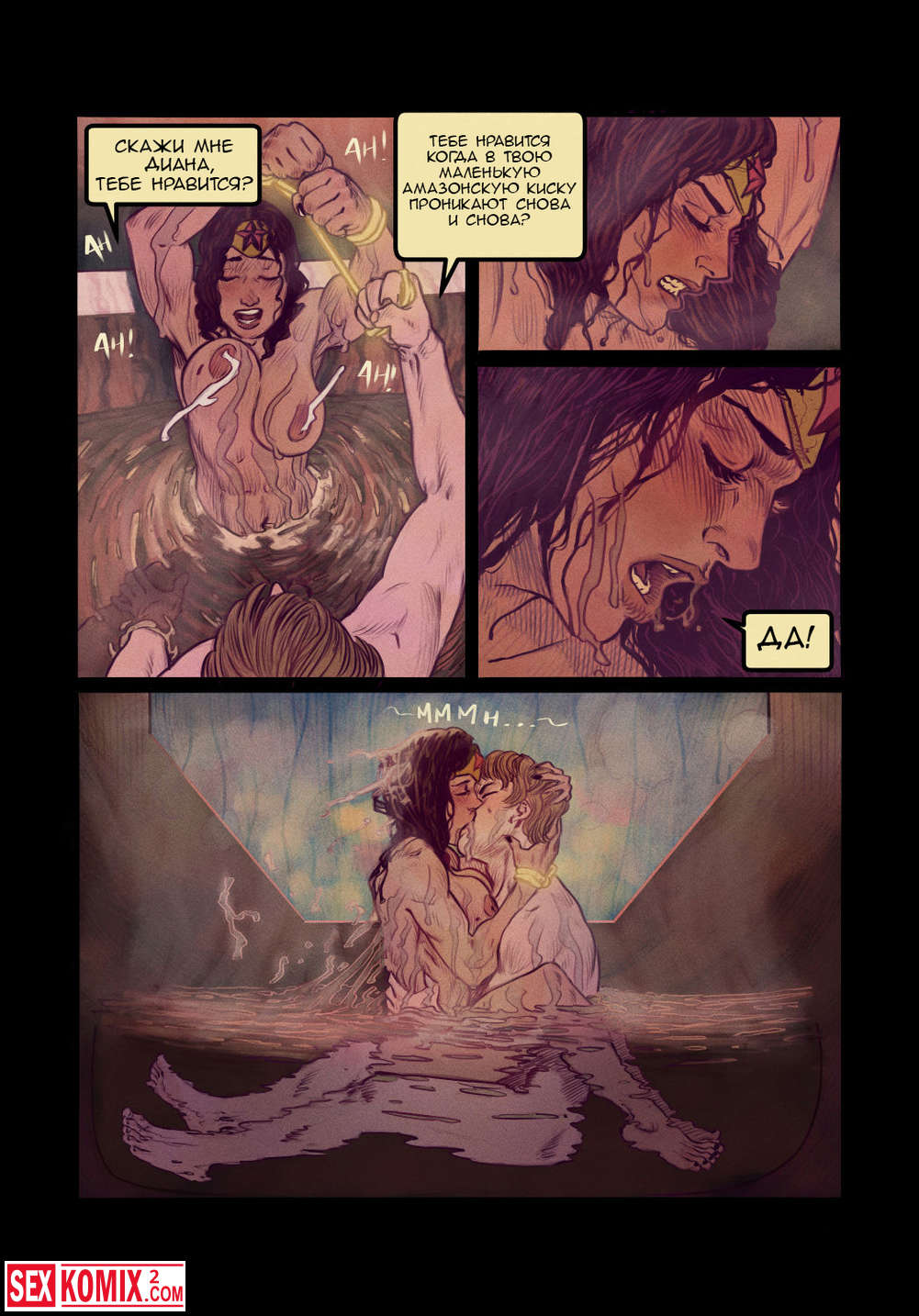 Порно комикс Чудо женщина. В ванной. Женщина супер-герой пришла в ванную комнату к своему другу и помогла ему максимально расслабиться.