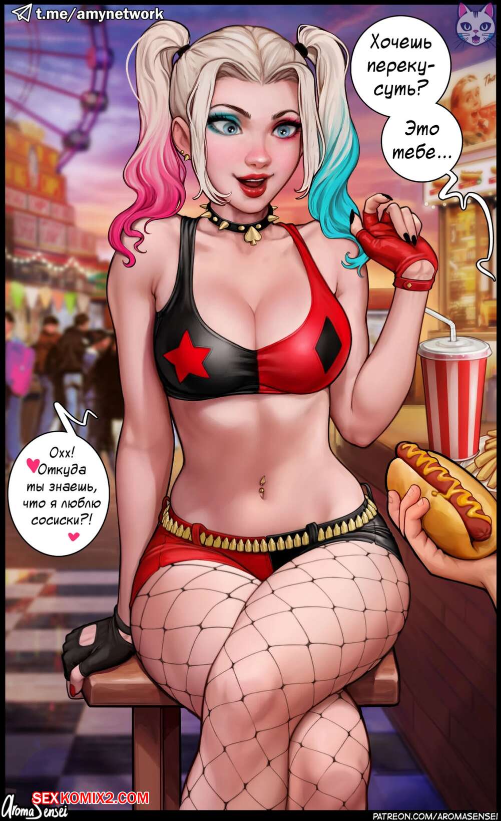 Порно комикс Свидание с Харли. Aroma Sensei Горячая красотка Харли отправилась на свидание с парнем, после чего решила с ним повеселиться. Она разделась перед парнем и дала ему себя выебать в задницу, после чего он кончил ей в попку.