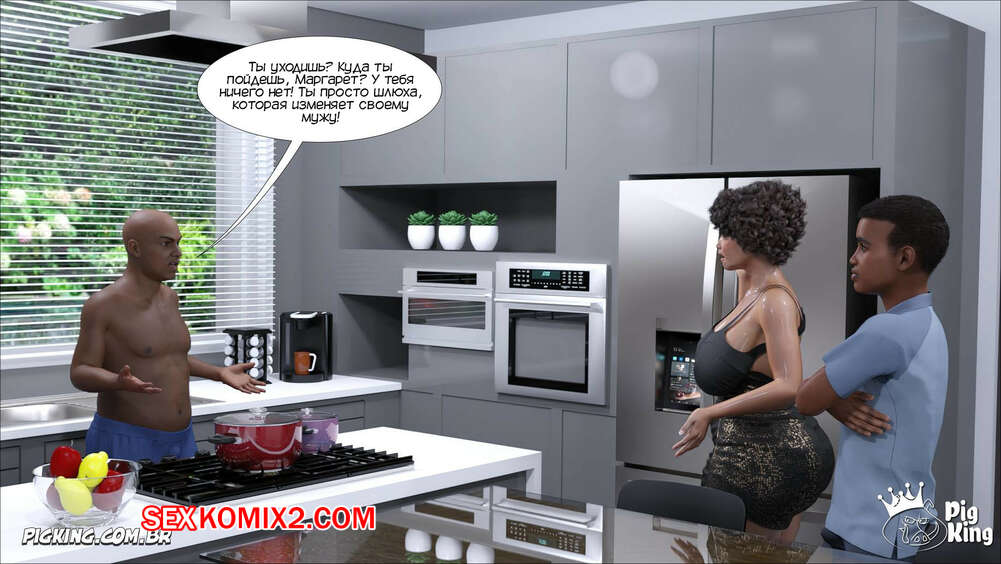 Порно комикс Маргарет. Часть 14. Pig King. Margarethe Сисястая милфа Маргарет поссорилась со своим мужем и решила повеселиться со своим сыном на кухне. Красотка разделась и дала парню себя выебать, пока ее муж куколд наблюдал за ними и дрочил.