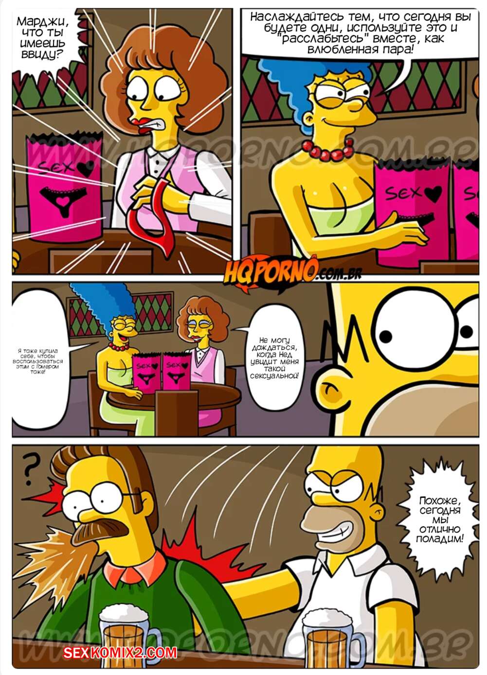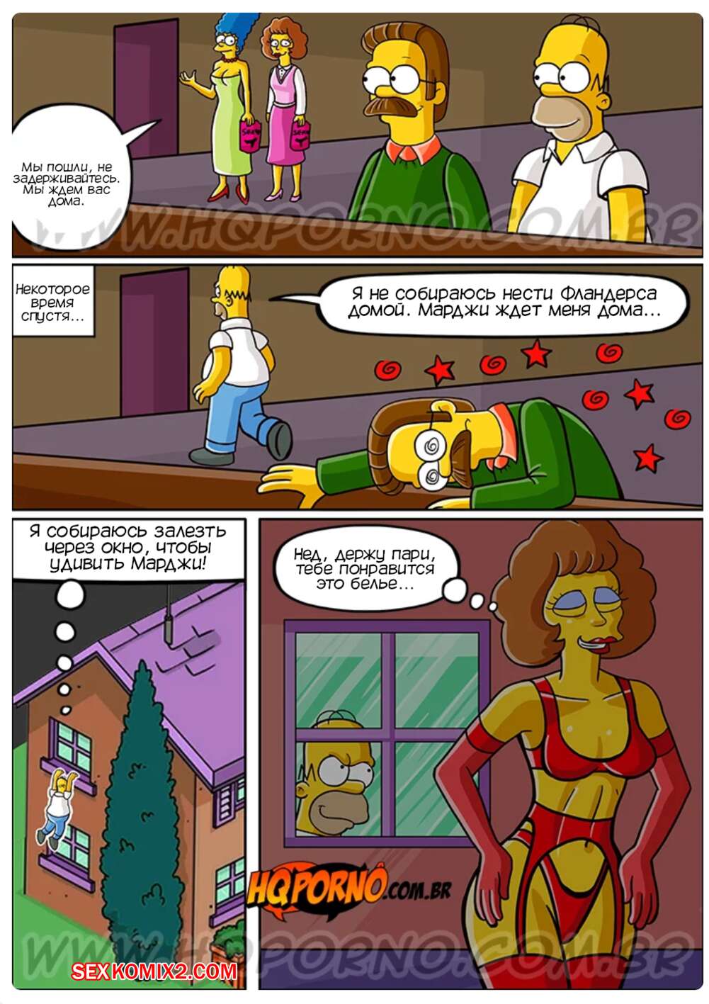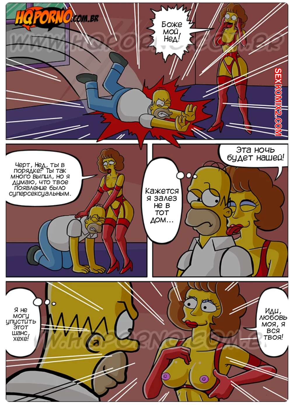 Порно комикс Симпсексы. Часть 12. Вкуснятина в темноте. Os Simpsexys. HQPorno Гомер напился и ошибся домой, когда возвращался из бара. Он оказался в спальне соседки милфы, которая подумала, что это ее муж вернулся домой. Милфа отсосала хуй Гомера, после чего дала ему себя хорошенько выебать.
