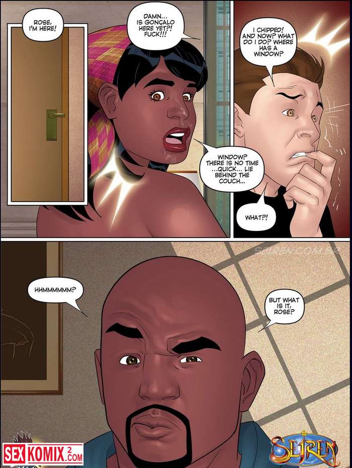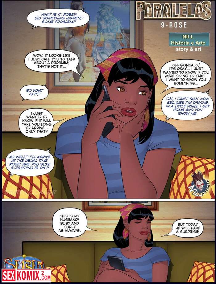Порно комикс Параллельно. Роза. Часть 9. Шоколадная жена ждала своего мужа совсем голая, но он пришёл со своим другом. Который потом её и выебал.