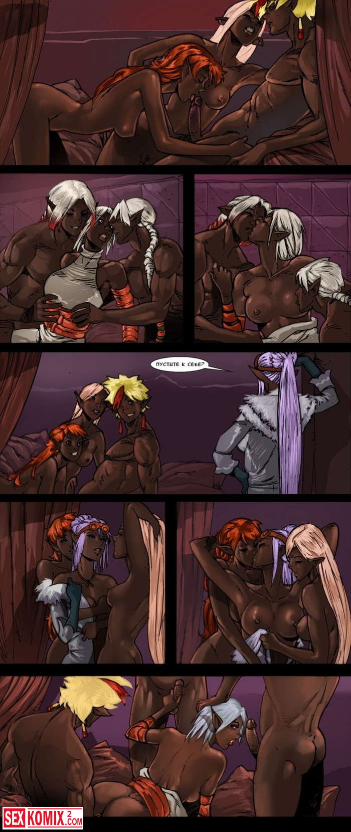Порно комикс Истории дроу. Камасутра. Девушки войны после сражения вернулись в крепость, для героинь устроили настоящее секс шоу.