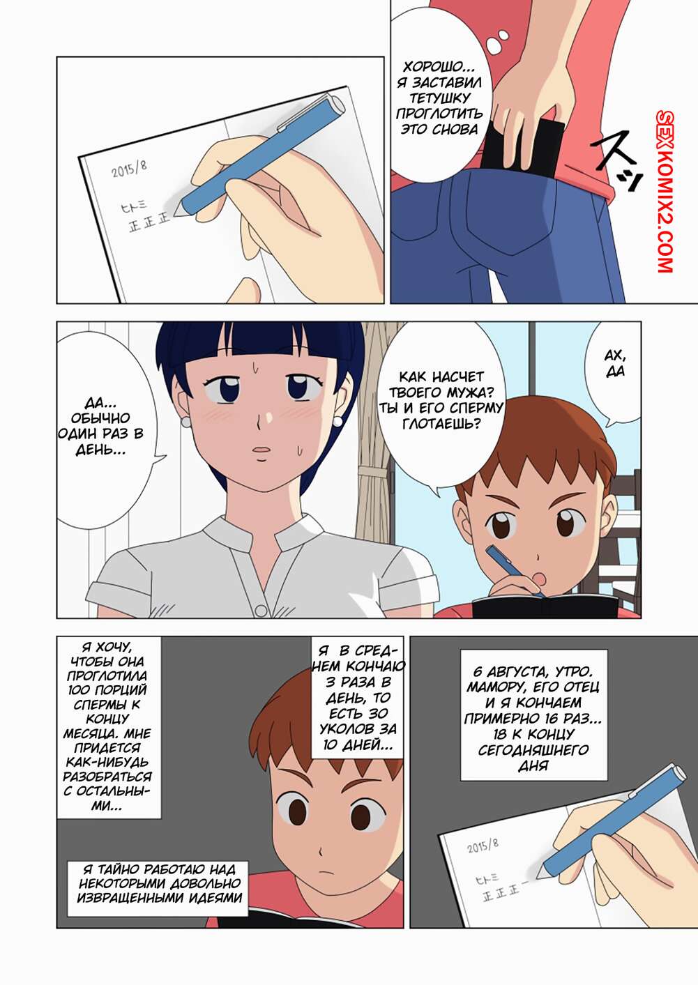 Порно комикс Ukisystem. Mothercorn. Часть 3. UKI S Горячие красотки милфы без ума от большого члена молодого парня. Красотки раздеваются перед ним и хорошенько у него отсасывают, после чего дают ему себя выебать.