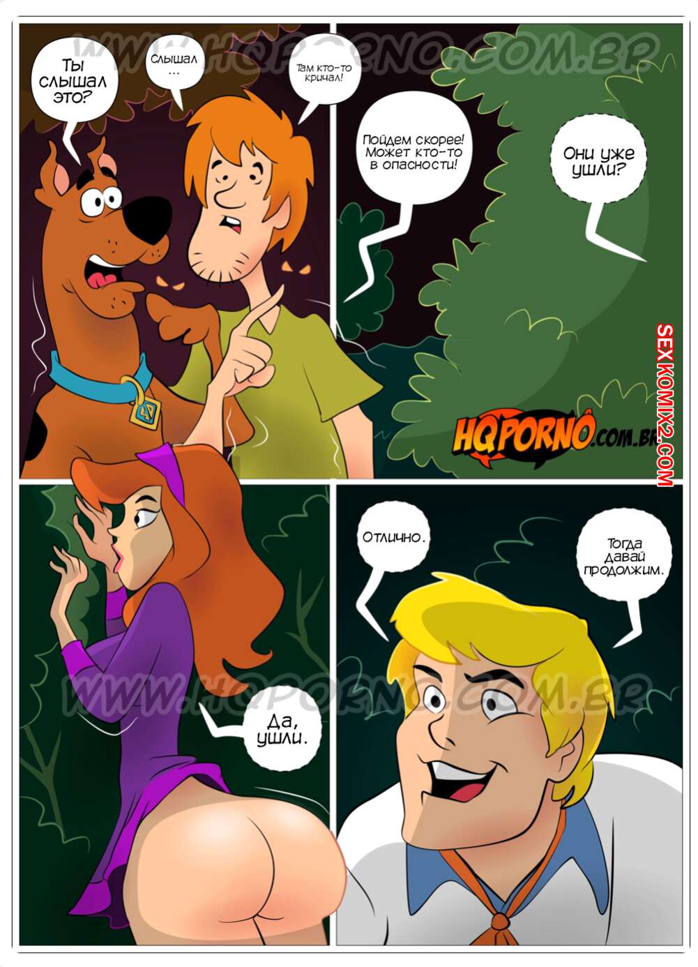 Порно комикс Скуби Ду. Часть 4. Оскорбленный призрак. Scooby Cool. Hqporno Во время задания Фред и Дафна уединились в лесу, чтобы повеселиться. Парень вылизал задницу девушки, после чего вставил в нее свой большой хуй и хорошенько ее выебал.