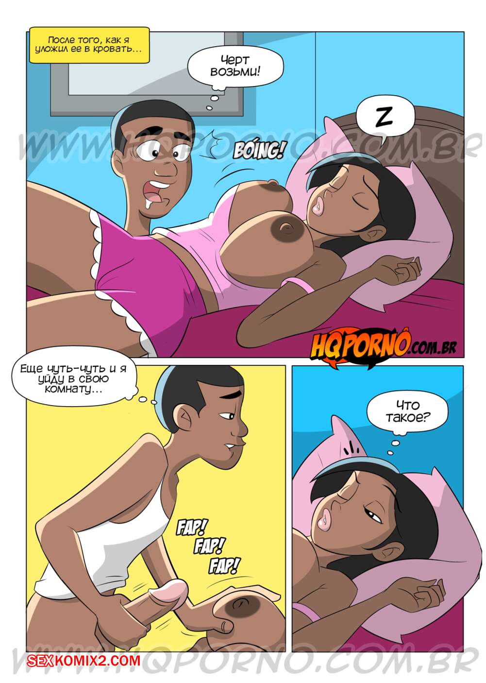 Порно комикс Семейка черных. Часть 4. Немного подарить маме. Familia Black. HQporno Темнокожий парень возбудился при виде шикарного тела своей мамки. Он долждался, когда она уснет, после чего пробрался к ней в комнату и хорошенько выебал мамку, кончив в нее.