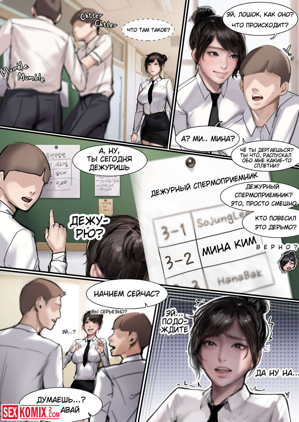 Порно комикс Дневники спермоприемника. Часть 1. Девушка работает в офисе с большим количеством парней и все они хотят трахнуть её.