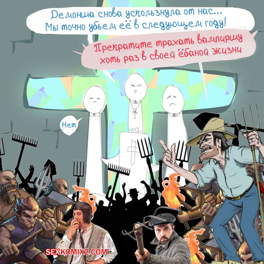 Порно комикс Хеллоуин. Spookmans Day. Monstrousfrog На горячую сексуальную вампиршу напали охотники и решили с ней повеселиться. Они достали свои большие хуи и дали красотке отсосать у себя, после чего хорошенько ее выебали.